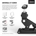 - Compact Alternative with 180° Tilt- The 1/4" screw adapter adjusts 180° back and forth, ensuring flexible and precise angle control to adapt to various lighting angle setups. Compared with tabletop tripods, the clamp mount saves desktop space and offers quick setup