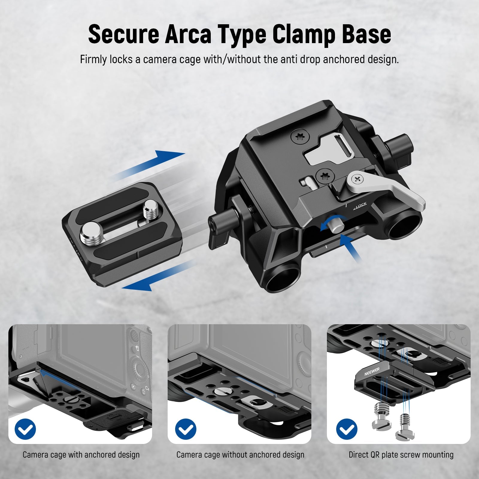 • Arca Type QR Plate for RS Gimbals- The Arca type QR plate features a retractable anti off pin to prevent it from dropping, and it is compatible with DJI RS4 RS4 PRO RS3 RS3 PRO RS2 RSC3 stabilizers, enabling you to smoothly transfer the camera between two equipment. The clamp is compatible with SmallRig and NEEWER camera cages, and has a side lock for secure mounting