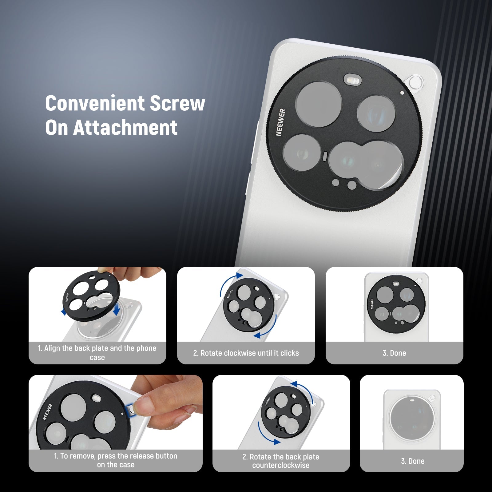 - Compatible with Xiaomi 15 Ultra- Exclusively compatible with Xiaomi 15 Ultra Original Phone Case, this lens backplate mounts 17mm threaded lenses to your phone for professional and creative mobile photography or video recording as content creator essential and influencer must have phone camera accessories. Note: NOT compatible with NEEWER PA091 Phone Cage and PA101 Phone Case for 15 Ultra