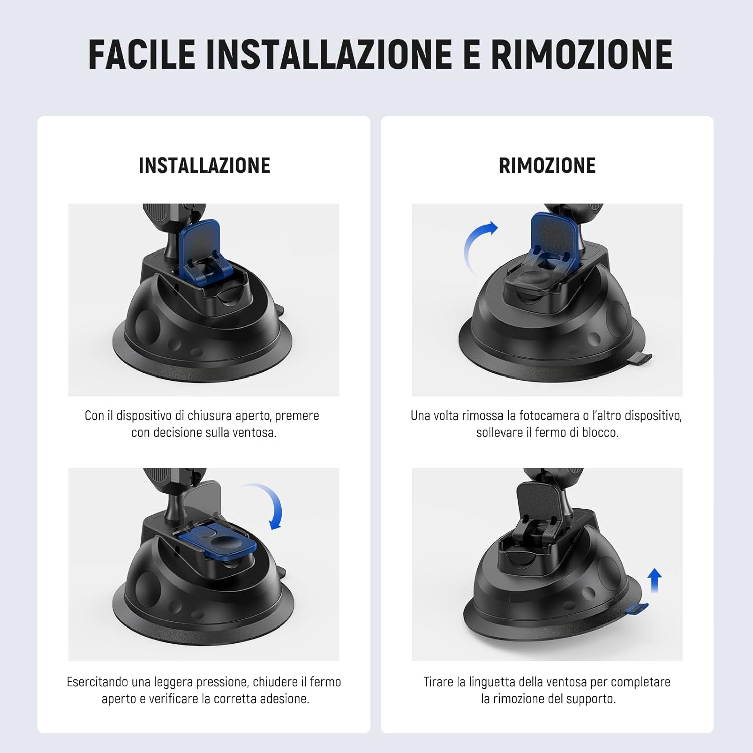 - Quick Lock and Go with Pressure Buckle- Simply press the latch to unleash superior suction power that effortlessly supports your phone or action camera with a moving load capacity of 1.1lb/0.5kg and stationary load capacity of 4.4lb/2kg, ensuring safe and quick setup and easy damage free removal