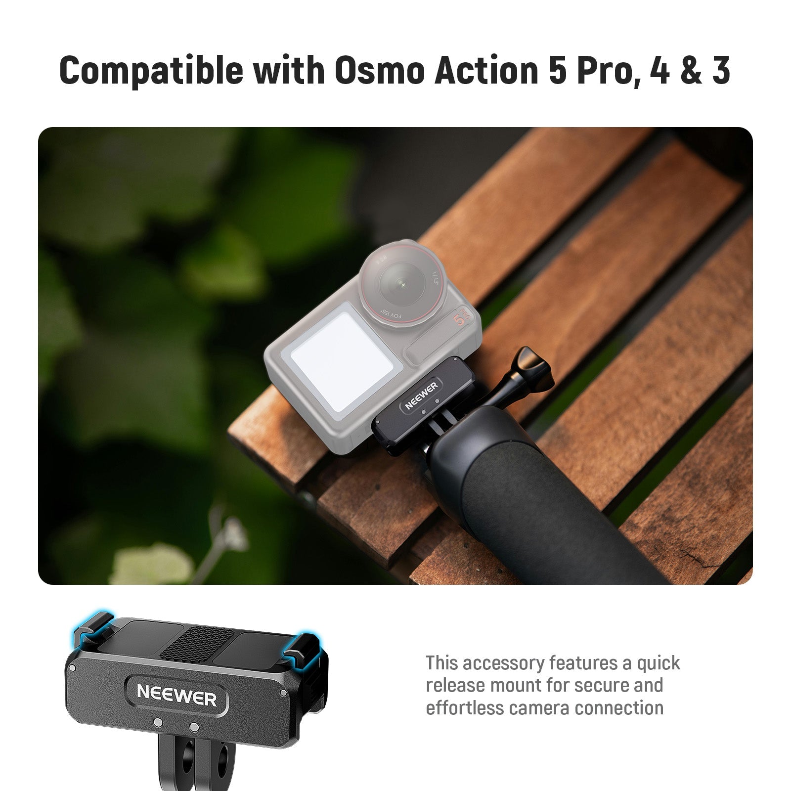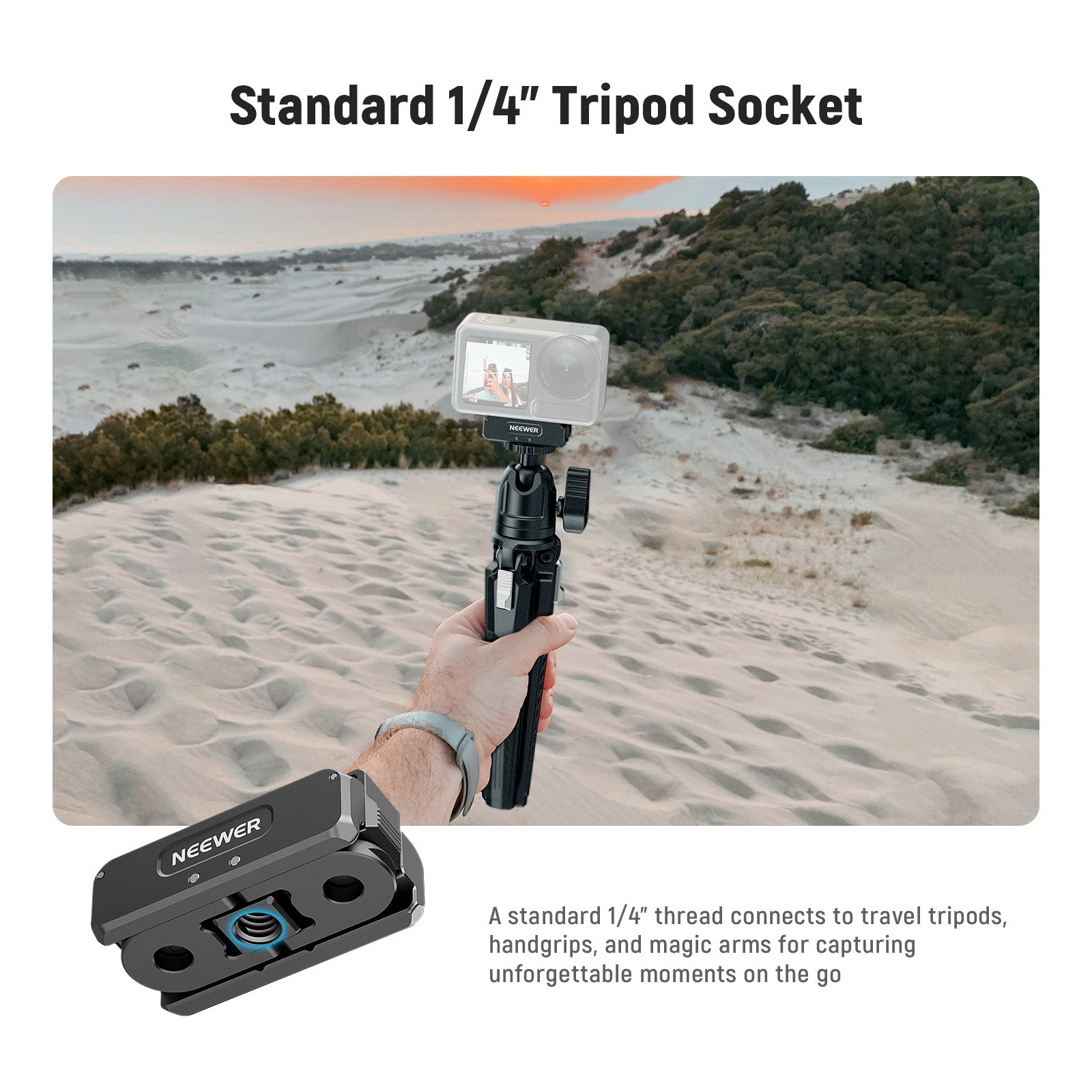 NEEWER offers a wide range of action camera cages, mount adapters, and more designed for GoPro, Insta360, DJI Osmo Action, and other popular action cameras. Whether you're filming extreme sports, outdoor adventures, or creative video projects, our products provide stability, versatility, and professional-grade support for every shot.