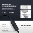 - USB A Powered with 6.4' Extended Cable- Featuring an extra long 6.4'/194cm USB A cable, this handheld LED fill light is conveniently powered via USB from a portable charger, laptop, etc, with no need for frequent recharging. The extended cable provides greater flexibility for placement and movement during lighting setup. The cable has built in buttons for simple control of power, brightness, and color temp. Includes a portable carry bag to accommodate all accessories for easy transport