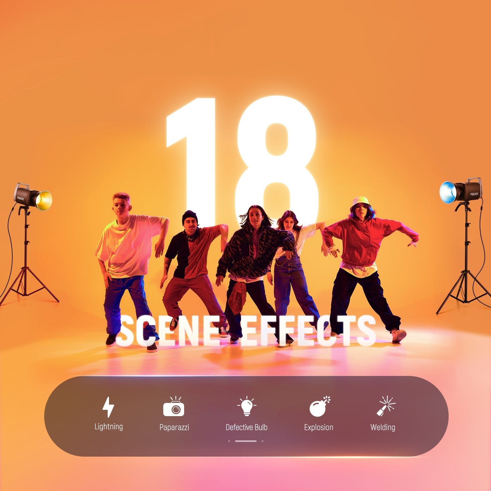 - Full RGB Light with 7 Lighting Modes- With advanced RGBWW blending technology, the FS600C spotlight excels in both brightness and color rendering, providing CCT/HSI/FX/GEL/RGBCW/XY/Light Source modes for versatile creative color options, along with 18 built in scene effects and 17 light source presets to unlock more possibilities. PWM based dimming enables brightness adjustment from 0-100% in 0.1% steps & offers 4 dimming curves for ultra precision. High CRI 95+/TLCI 97+ ensures color accuracy
