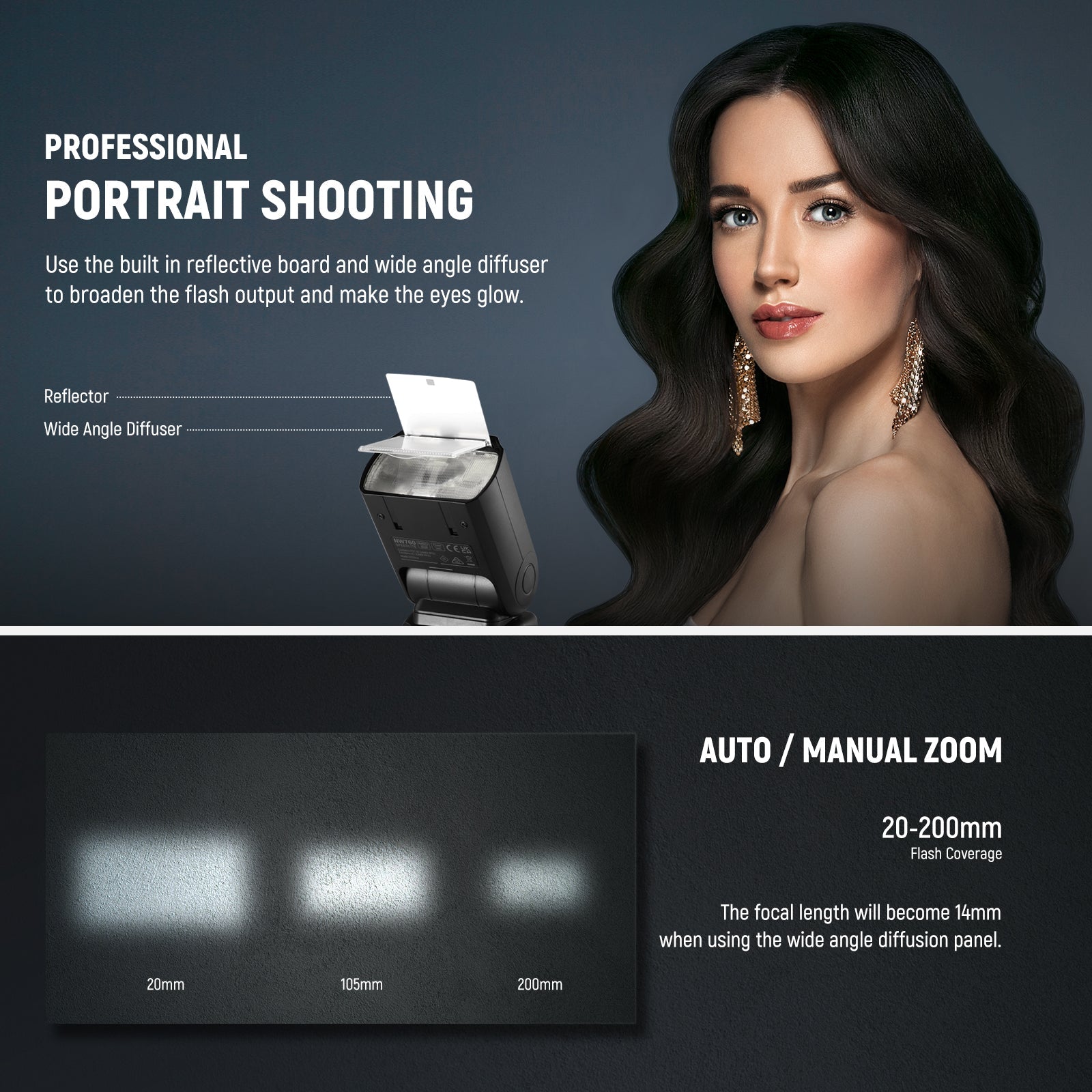 - Flexible Flash Angles & Effects- The flash head supports -7°-120° tilts and 360° rotation for flexible flash bounces and reflections. The included reflector and wide angle diffusion panel can make eyes sparkle and broaden the flash coverage for a soft and natural result. The HD LCD screen enables customization, standby, autofocus assist beam, and backlight for convenient operation