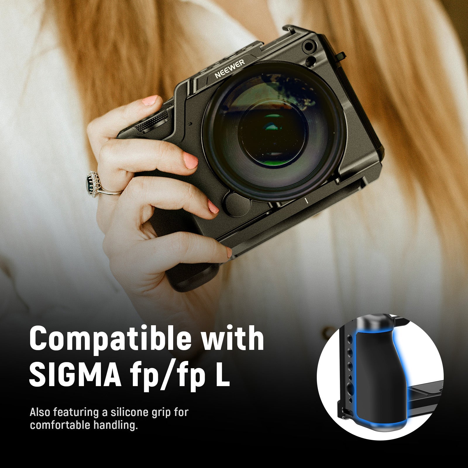 - Compatible with SIGMA fp/fp L- This camera cage is compatible with SIGMA fp and fp L mirrorless cameras, with full access to all the control buttons, battery compartment, and LCD screen. Crafted from robust yet lightweight aluminum alloy, this camera holder accessory is ideal for outdoor shooting and video recording