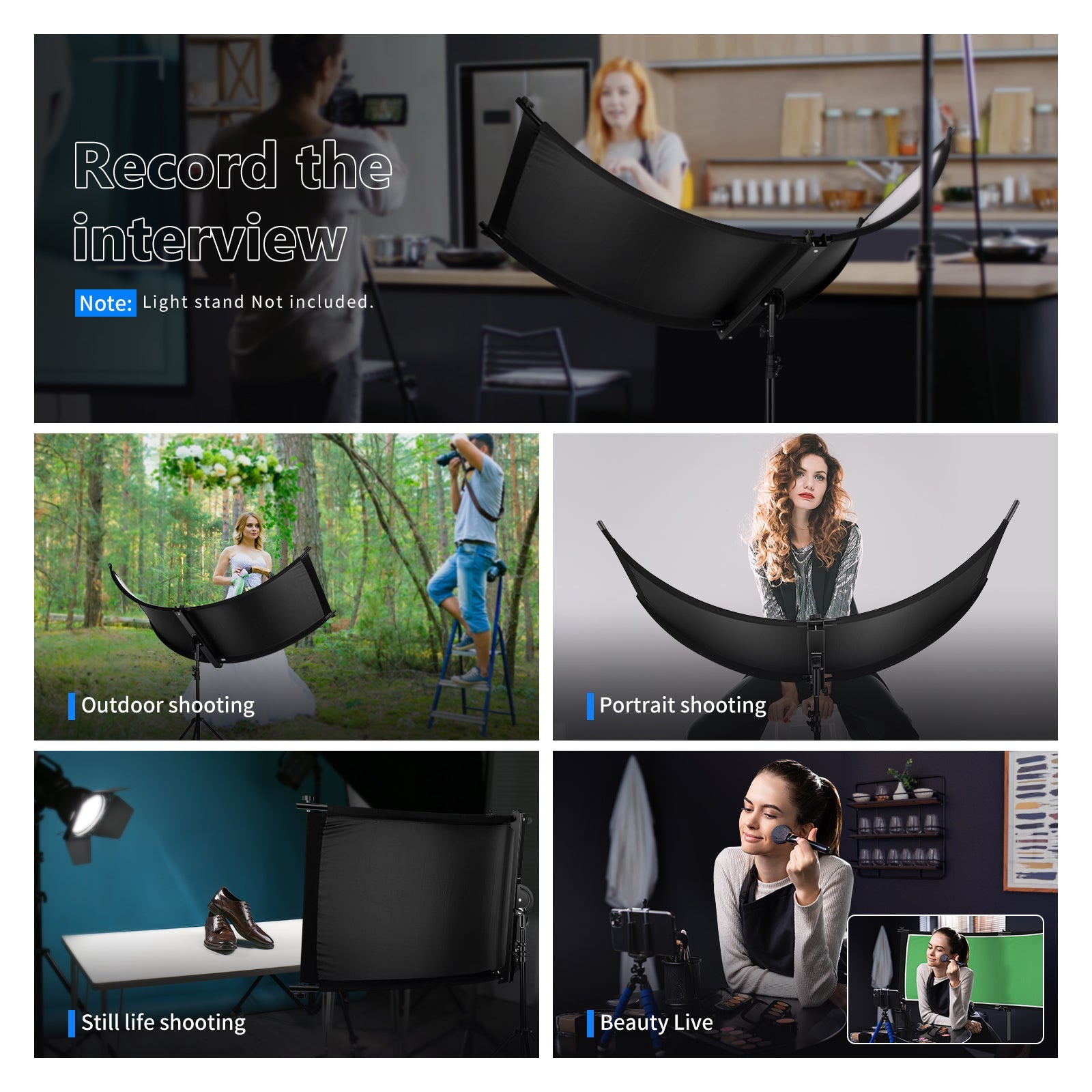 - Make the Eyes Pop- Neewer Clamshell Reflector imitates the curvature of human eyes and bounces crescent catchlights to make the eyes sparkle in portrait photography. The light seamlessly reflected from three perspectives can eliminate shadows, and the fabric is suited for strobes, monolights, LED lights, and even natural sunlight