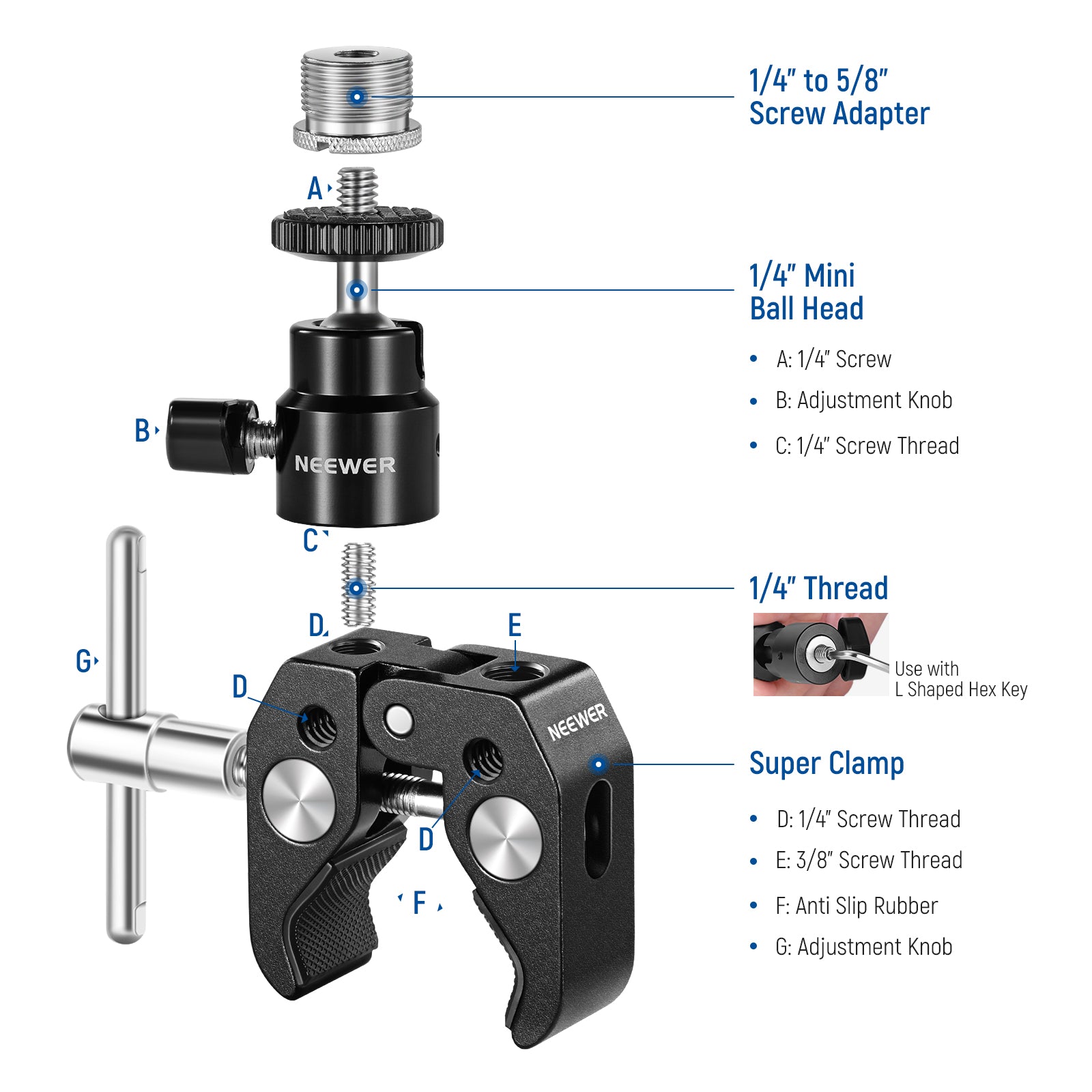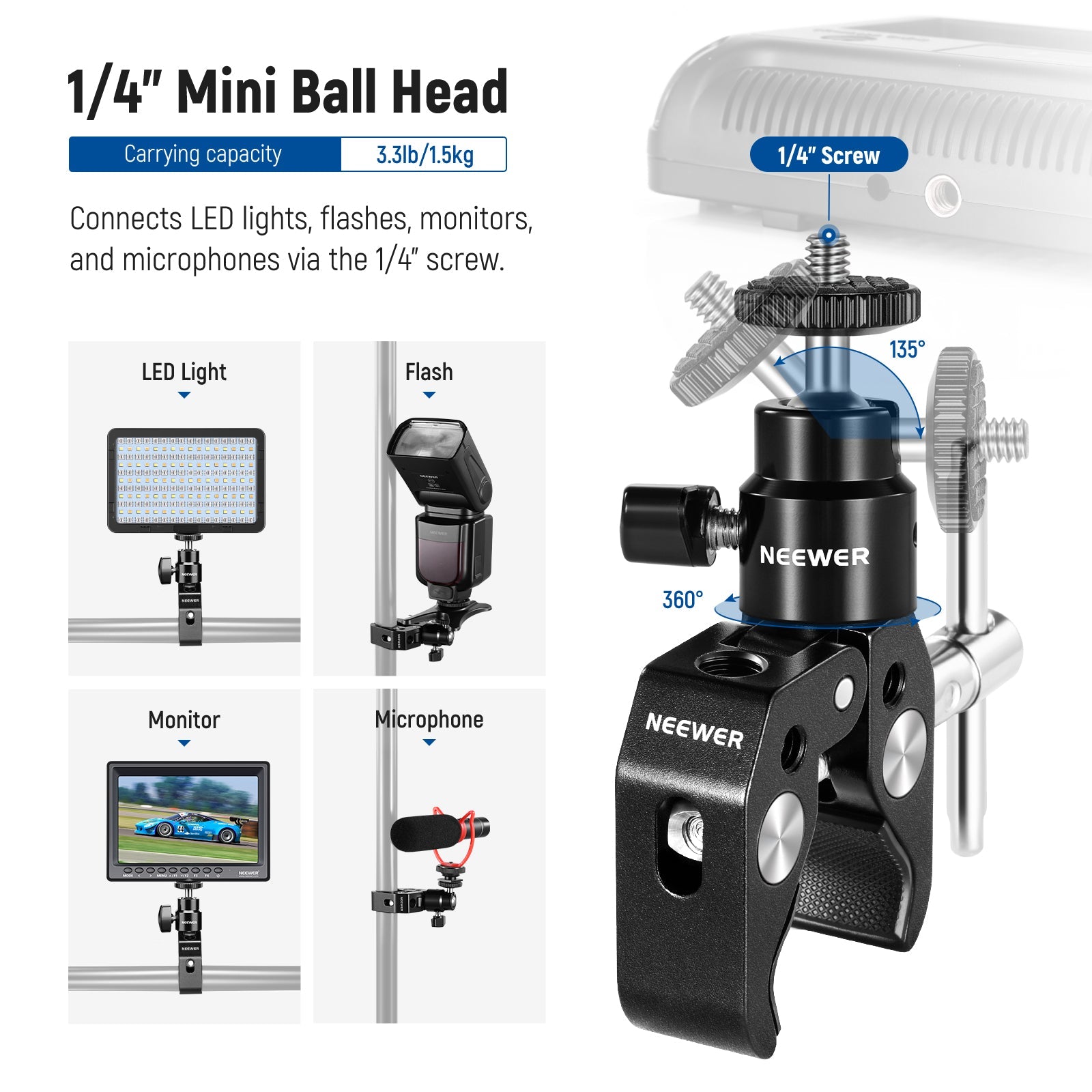 NEEWER ST48 Crab Clamp & Mini Ball Head for Microphone