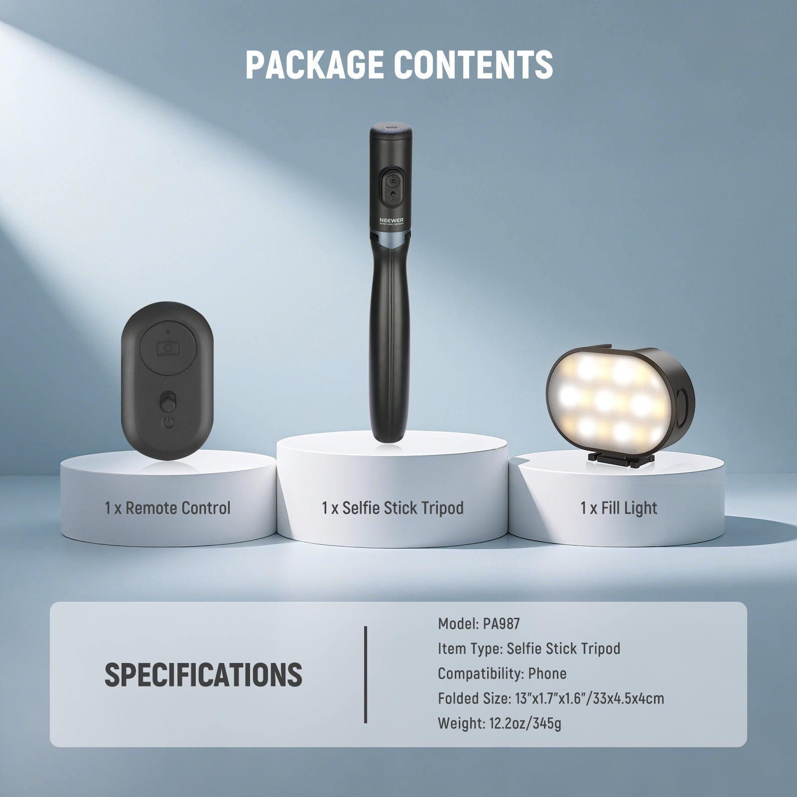 Product overview of the NEEWER PA987 Selfie Stick Tripod