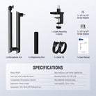 - Adjustable with Heightening Pole- The mic boom arm desk mount comes with a fully extended length of 29.6"/75.2cm, and each arm measures 14.8"/37.6cm, with an additional 5.9"/15cm extension pole for varying heights. This design ensures comfortable positioning for recording at different heights, preventing awkward bending or obstructed views, allowing you to concentrate more on your work or creative projects. Content creator essential and influencer must have overhead microphone stand