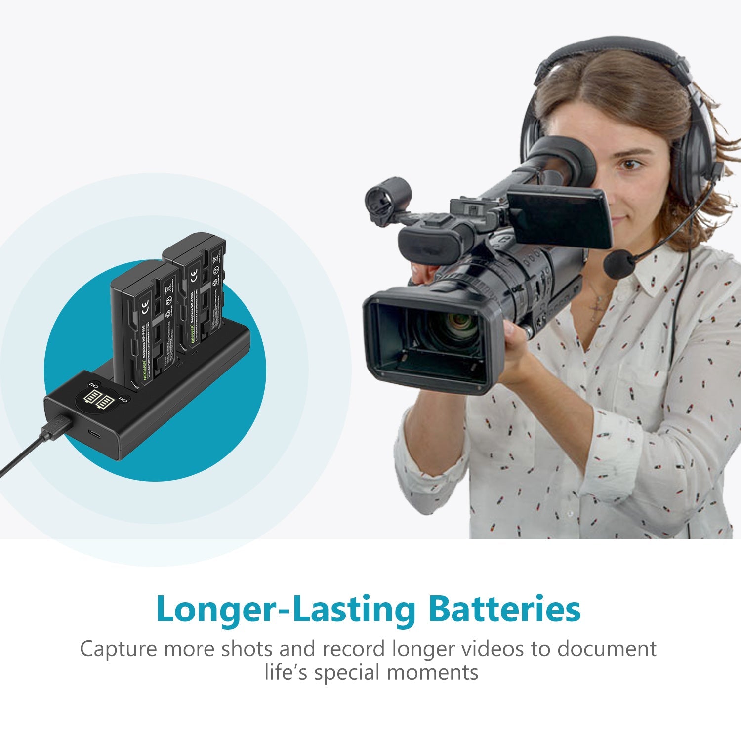 - The large capacity batteries offer more power, no need to worry about power failure when you want to record wonderful moments.