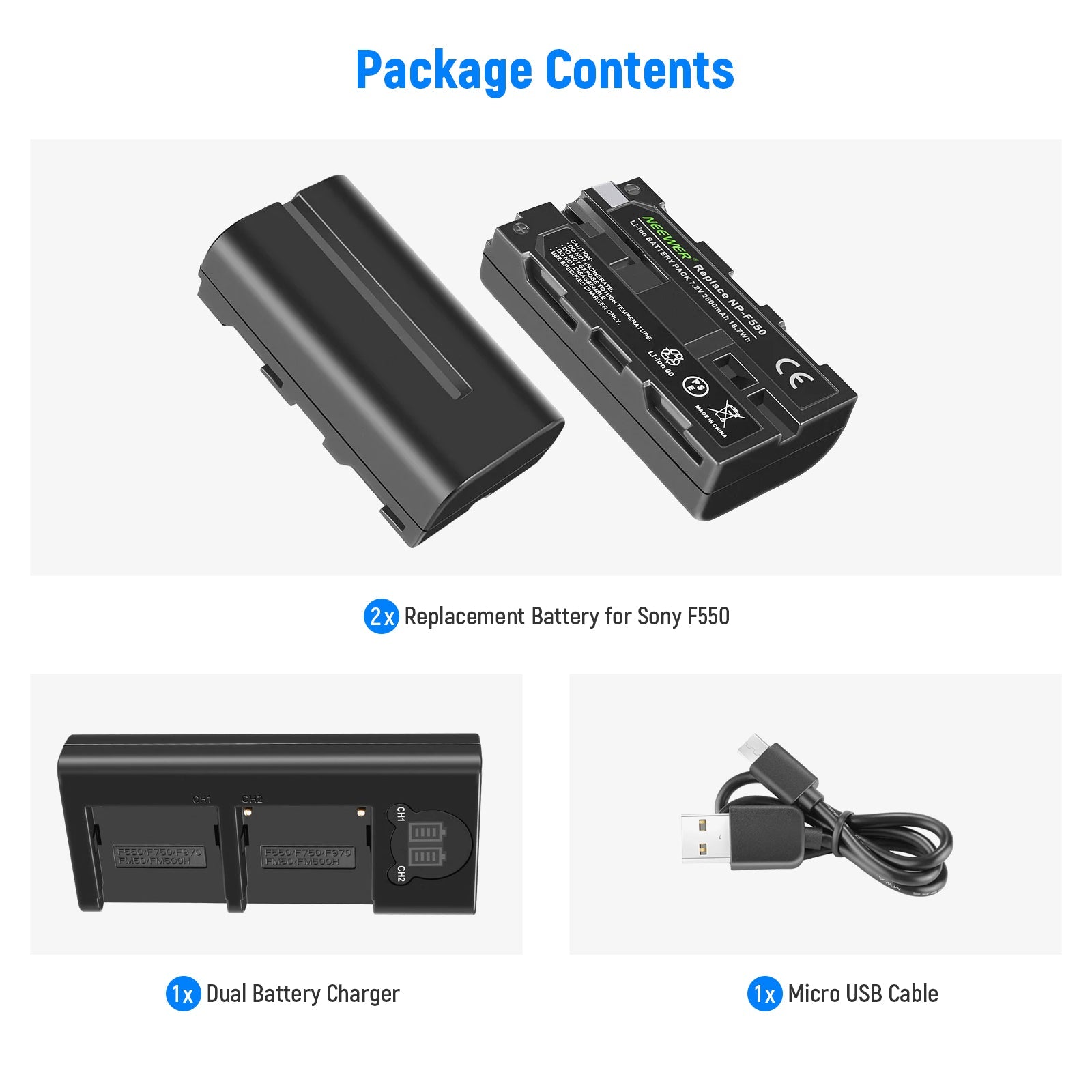 NEEWER NP-F550 2600mAh Sony Battery Charger Set
