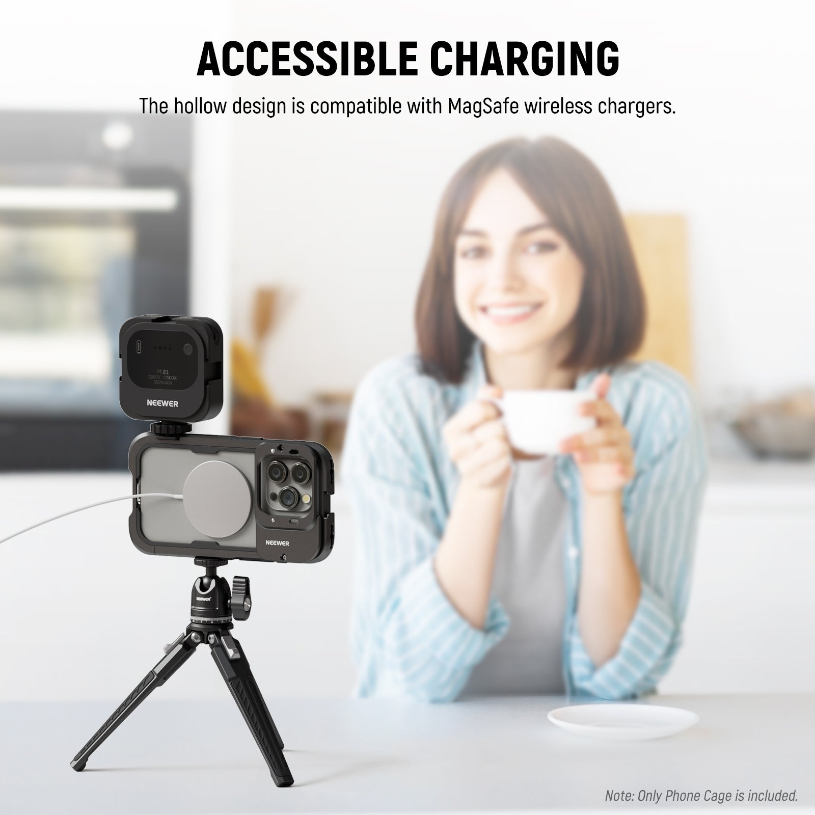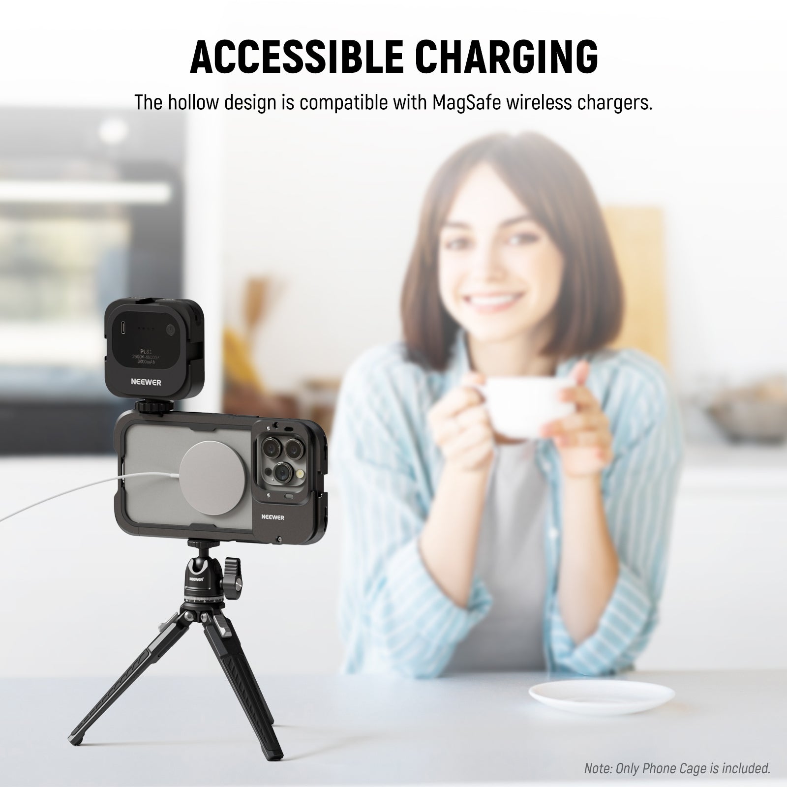 Note: The hollow back of iPhone 15 Pro Max cage is compatible with MagSafe wireless charger MagSafe battery pack and PA010 Magnetic Phone Holder. (iPhone 15 Pro cage not compatible)