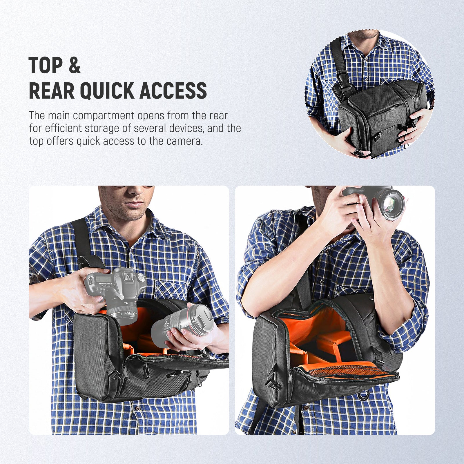 - Multi-Use And Durable Material- Fastening-tape padded adjustable dividers, mesh pockets for smaller accessories, tripod/monopod holder with firm strap, and quick access side doors. Comes with a water-resistant polyester rain cover