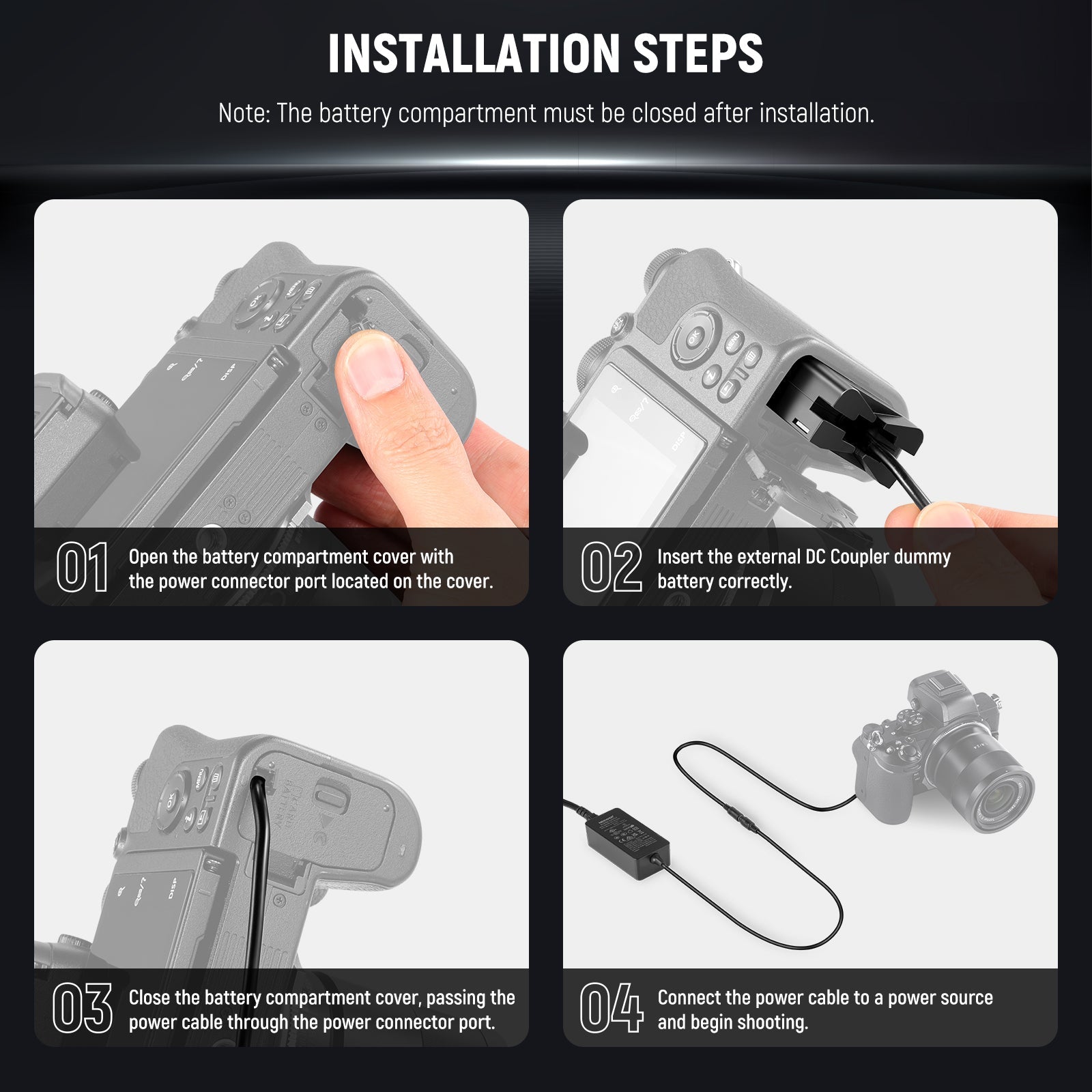 - Compatible Models- This power adapter coupler kit is compatible with Nikon Z50 Z fc Z30 cameras. It saves the trouble of installing and recharging traditional batteries, providing a reliable power solution for professional photographers, videographers, and enthusiasts alike