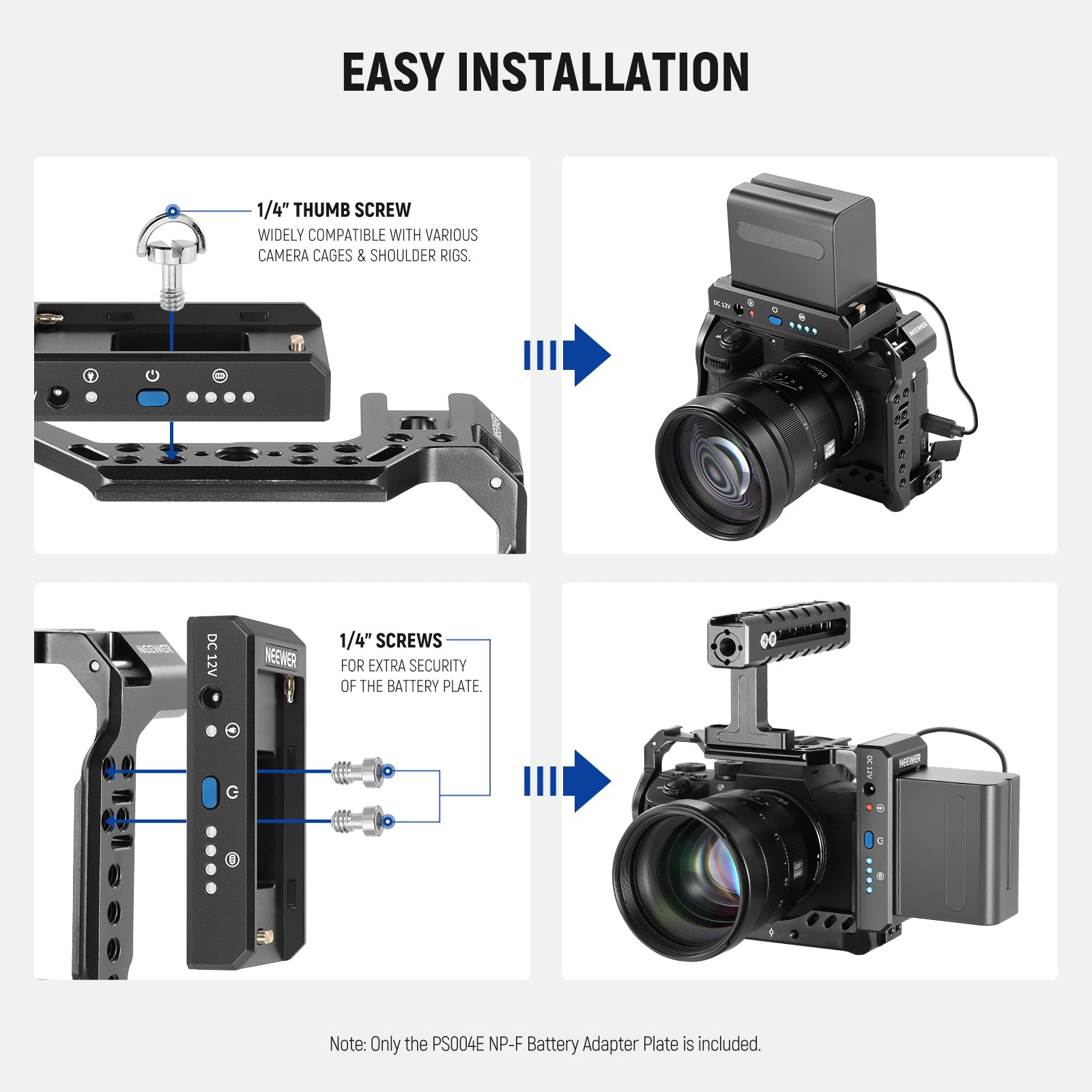 - Wide Compatibility- NEEWER PS004E battery adapter plate is compatible with all Sony NP-F batteries to deliver battery power to your DSLR camera, mirrorless camera, and other photography equipment