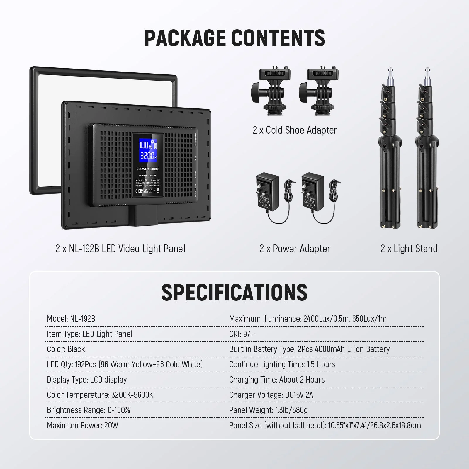 NEEWER LED Panel Lights provide bright, continuous, and bi-color illumination, making them perfect for portraits, product photography, YouTube vlogs, video gaming, and online meetings. Our collection features a variety of LED panel lights, including camera lights, video lights, and more. These professional LED panel lights are designed to elevate your photography and deliver outstanding results.