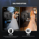 - AC Adapter or V Mount Battery Powered- The portable bi color panel light gear provides dual power options for indoor and outdoor use. Indoors, use the included 20V AC adapter and power cord accessories. Outdoors, you can power it using a V mount battery (14.8-26V) and D tap to 4 pin cable (battery & D tap cable sold separately), ensuring uninterrupted photography and videography lighting. The DC port with a locking design prevents accidental disconnection during use