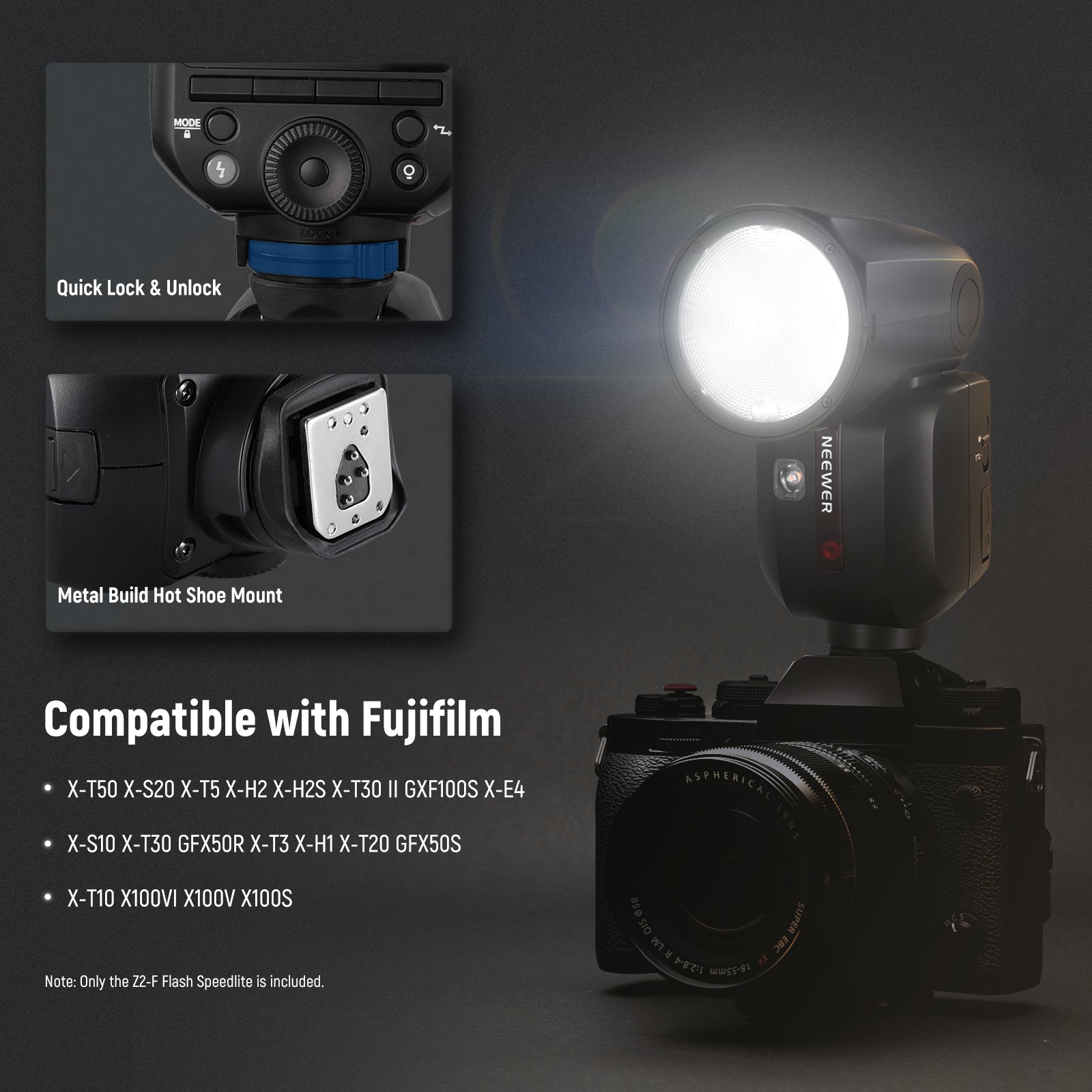 NEEWER offers a wide range of detachable camera flashes, including speedlite flashes compatible with Canon, Sony, Nikon and Fujifilm cameras. These flashes support TTL auto flash and HSS, helping you capture perfect shots with ease — even in challenging lighting conditions. Compact and portable, NEEWER speedlite flashes are ideal for photographers on the go. Choose a high-quality detachable camera flash to enhance your photography.