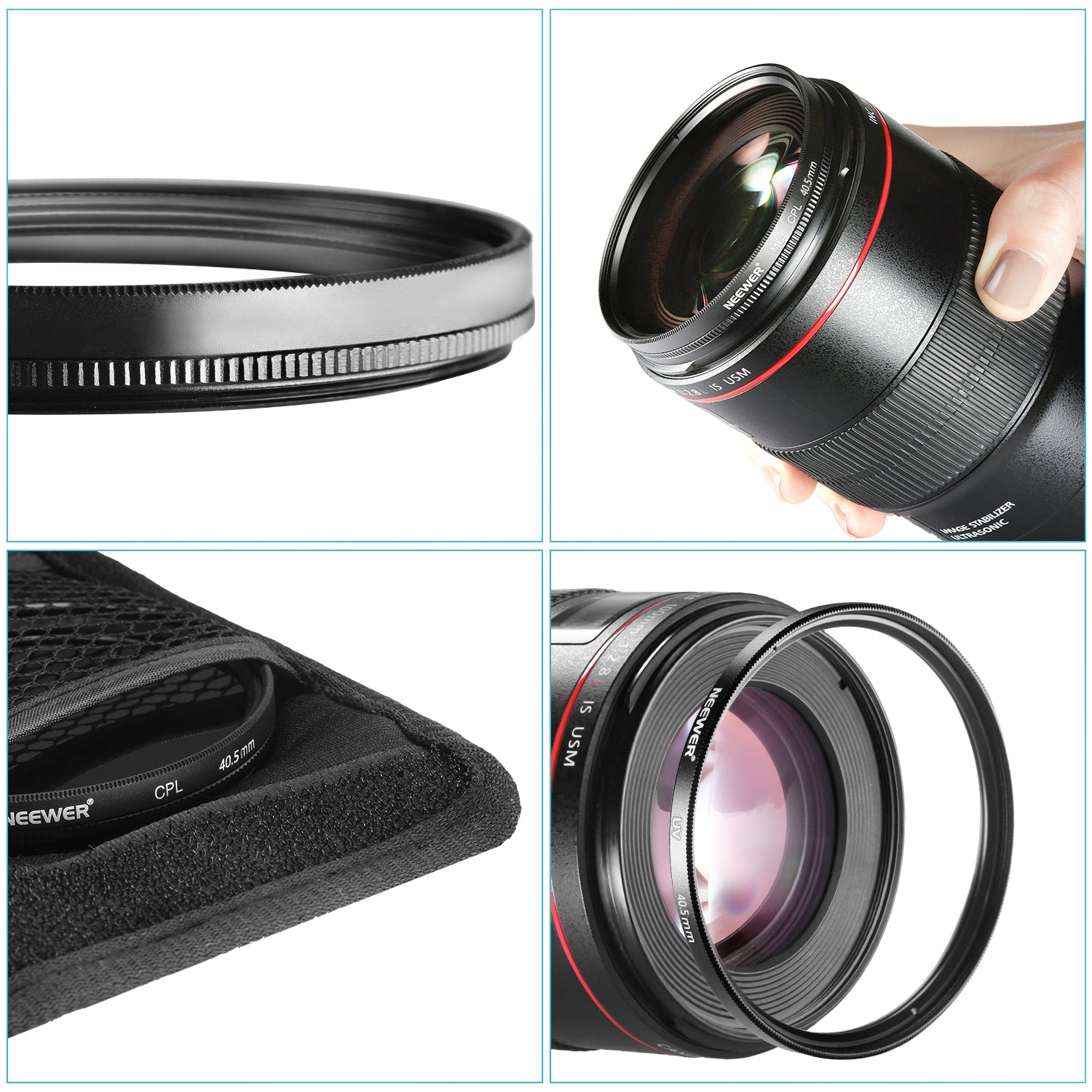 NEEWER Lens Filter Kit UV Filter+CPL Filter+ND4 Filter+Filter
