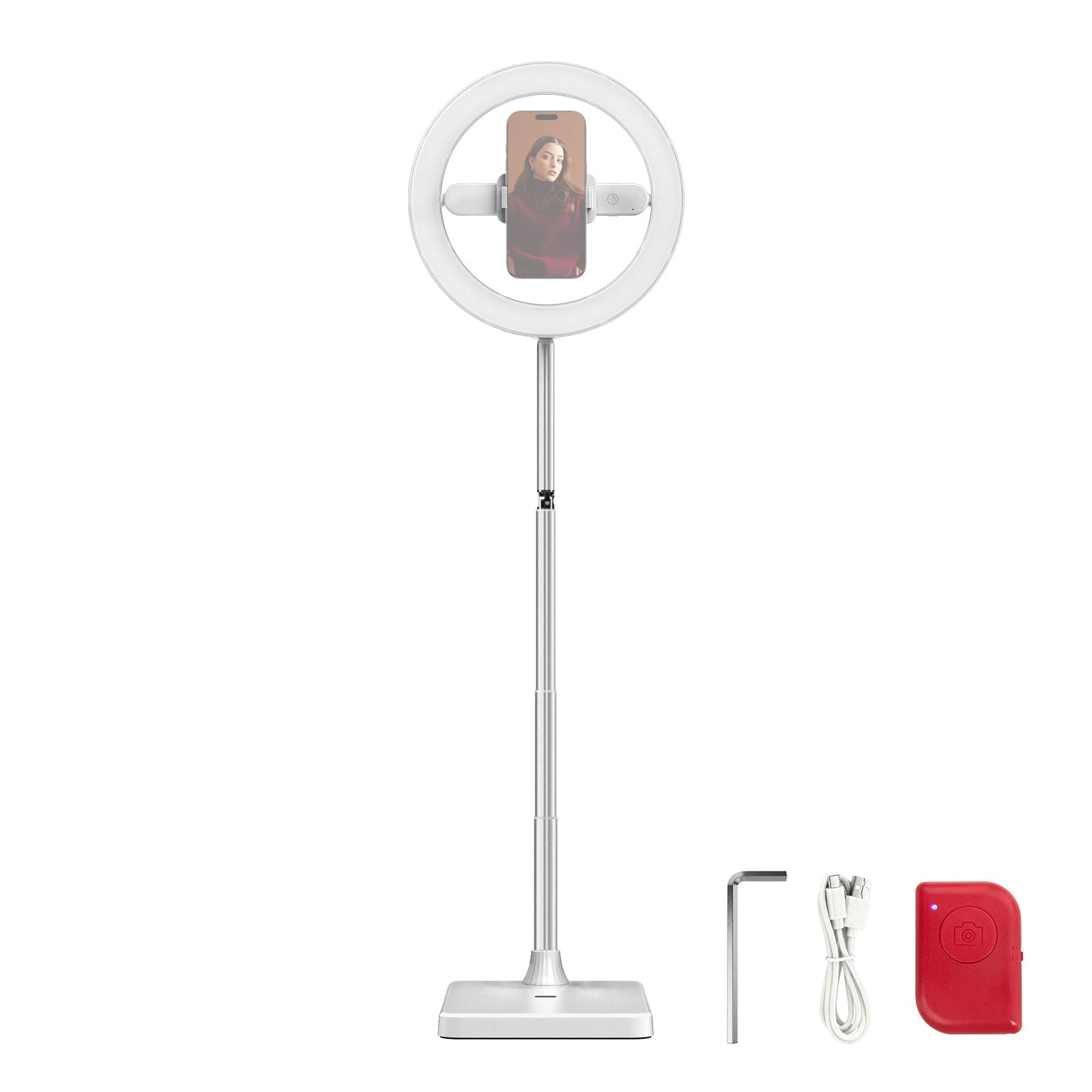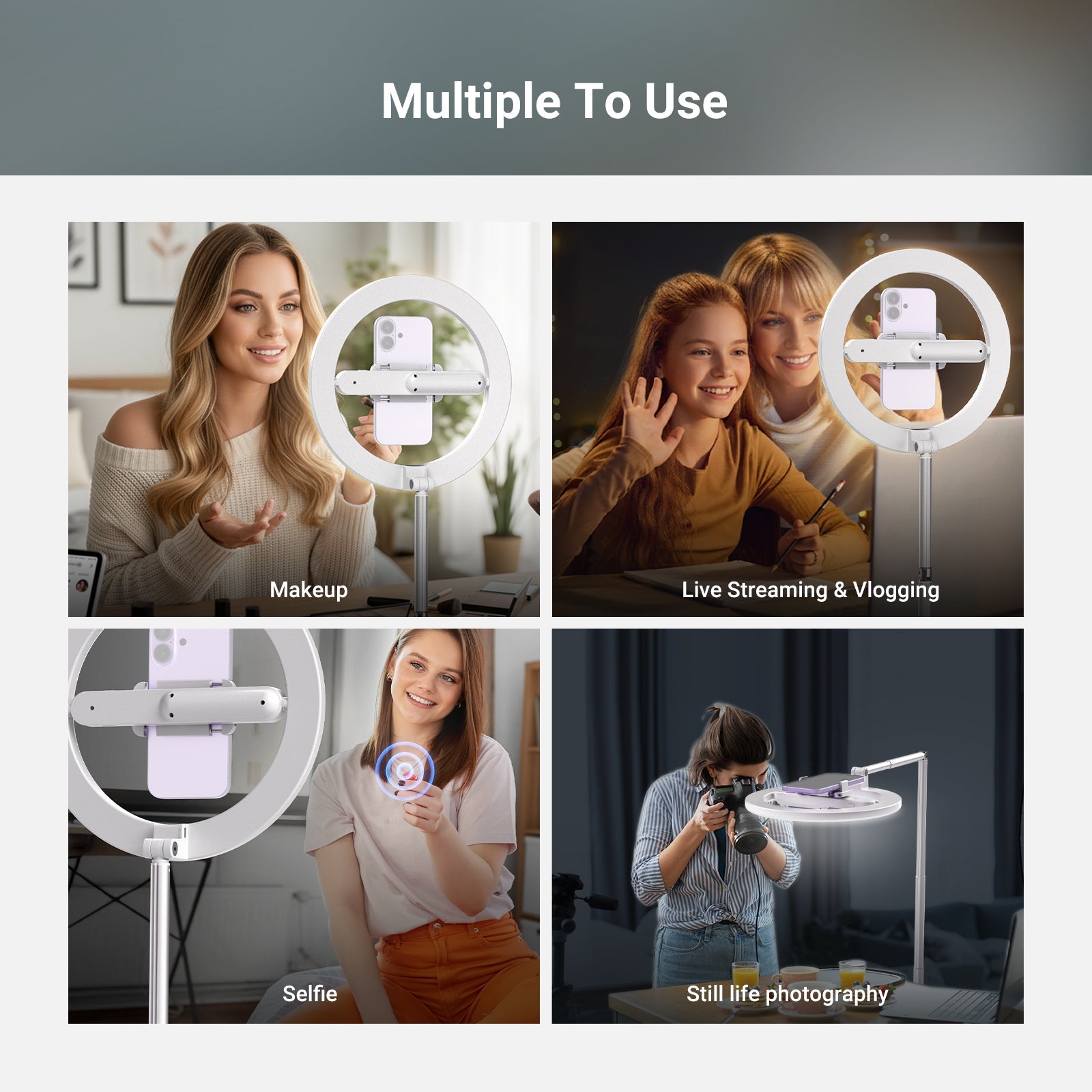 - Ideal for Phone Photography- A 360° universal phone mount secures your phone at the center of the portable LED ringlight, delivering direct, diffused soft light for optimal photo and video quality in portrait & landscape modes. This large ring light with stand for video recording selfie filming vlogging, is compatible with iPhone 16 15 Pro Max Plus Samsung S24 Ultra cell phone, etc. Essential accessories and must have phone camera lighting gear for social media content creators and influencers