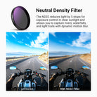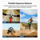 - Flexible Exposure Control- ND8, ND16, and ND32 neutral density filters provide 3, 4, and 5 stops of light reduction, allowing balanced exposure in various environments and creative motion blur effects