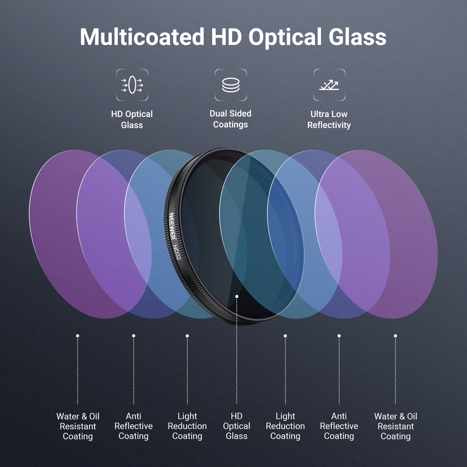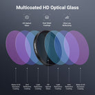 - ?Multicoated HD Optical Glass- HD optical glass ensures exceptional image clarity. Multiple protective coatings on both sides resist water, scratches, and fingerprints