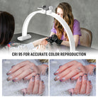- Foldable 29" LED Arc Lamp- This dimmable, bi color 29" desktop LED manicure arm lamp for table offers a 40W power output, a 3000K-6500K color temperature range, 3400lux/0.5m max illuminance, and CRI 95 for accurate color reproduction. This desk half moon nail tech fill light’s foldable design allows for easy storage and transportation, perfect for makeup artists and content creators on the go