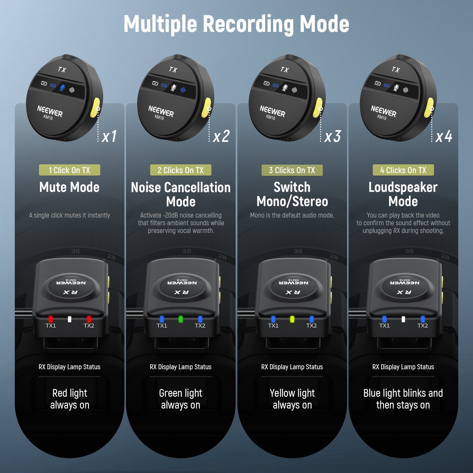 NEEWER KM18 Wireless Microphone System for Camera/Smartphone/PC
