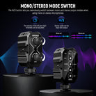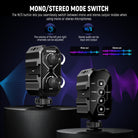- Mono/Stereo Mode Switch- Two dials control gains on the left and right channel. The M/S button lets you seamlessly switch between mono and stereo output modes: set to M when using single channel and S when using both