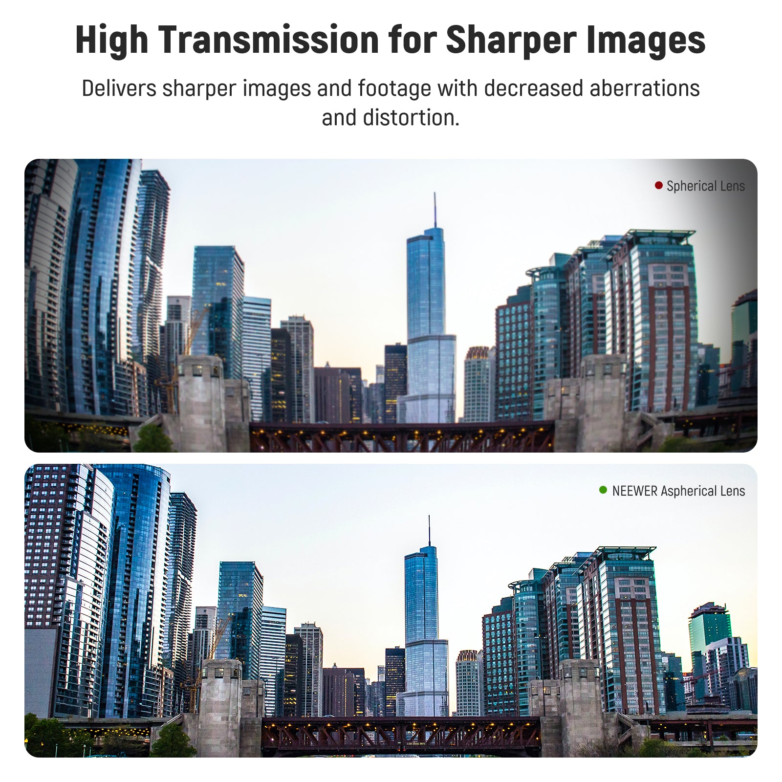 • High Transmission & Lightweight- Our aspherical camera lens is made of multi coated high transmission optical resin lenses of 3 elements in 3 groups, delivering sharper images and footage with decreased aberrations and distortion. Small and only 0.2oz (4.6g) lightweight, it is compact for you to travel with ease