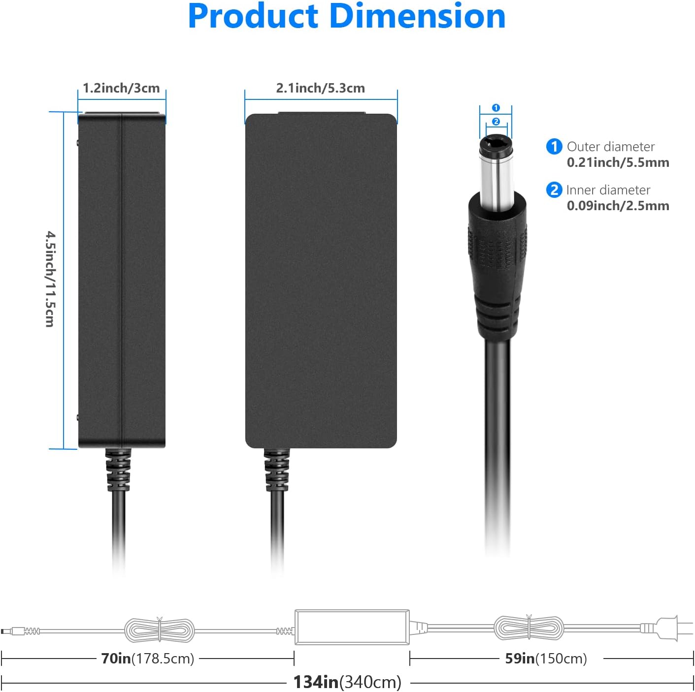 - Output Voltage: 15V DC; Output Current: 4.8A; Length of Cord: 11.16ft/3.4m