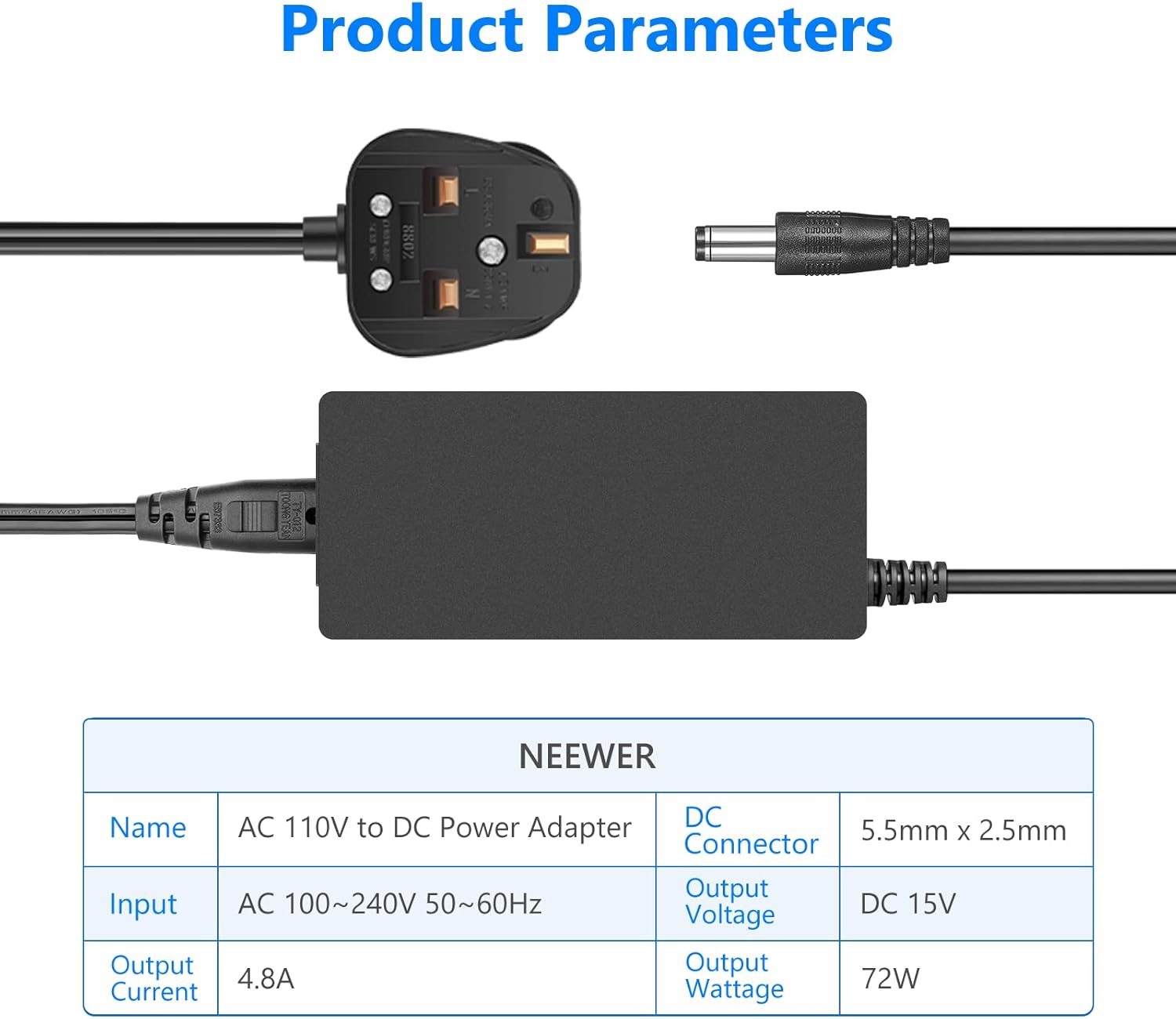 NEEWER AC 110V to DC 15V Power Adapter for RL-18