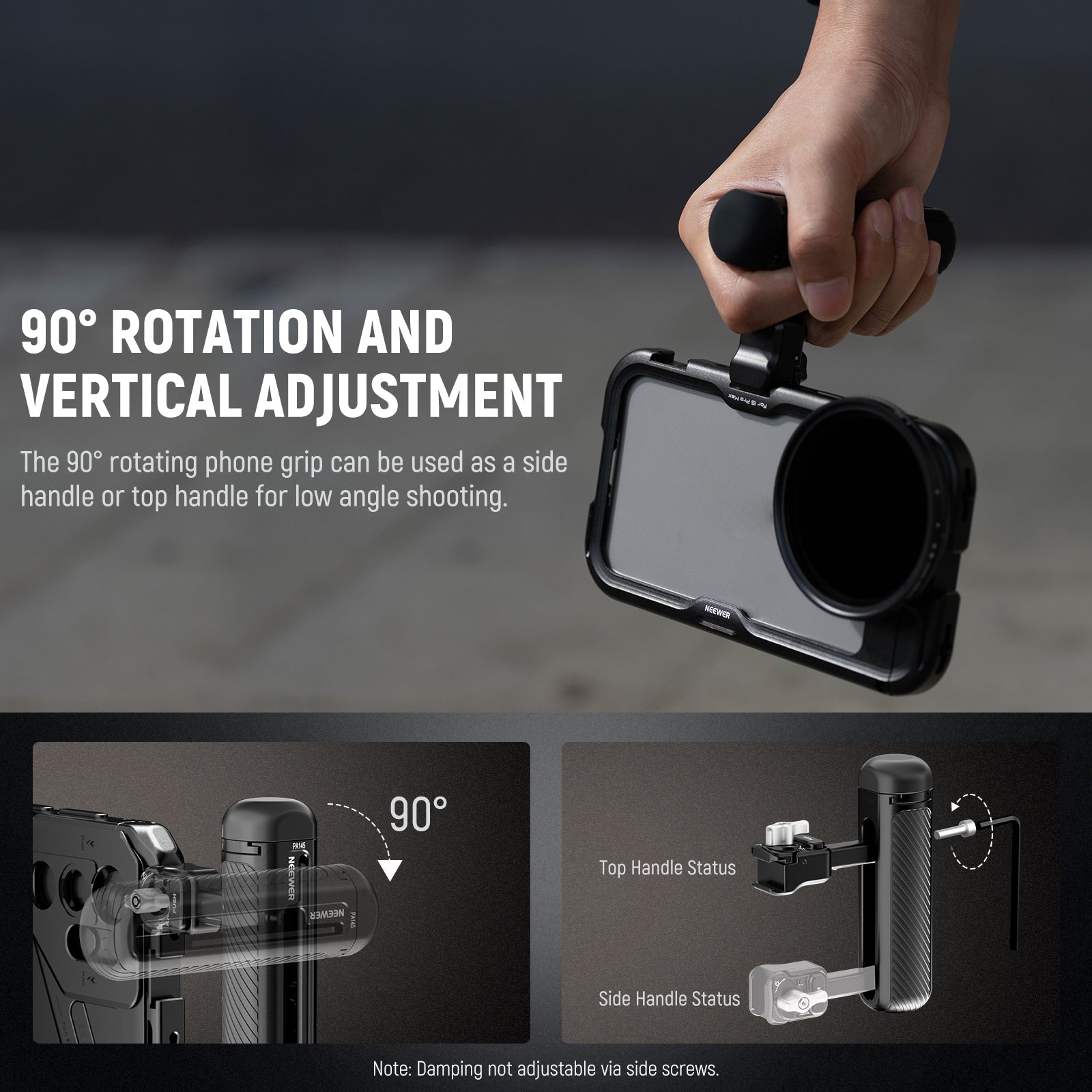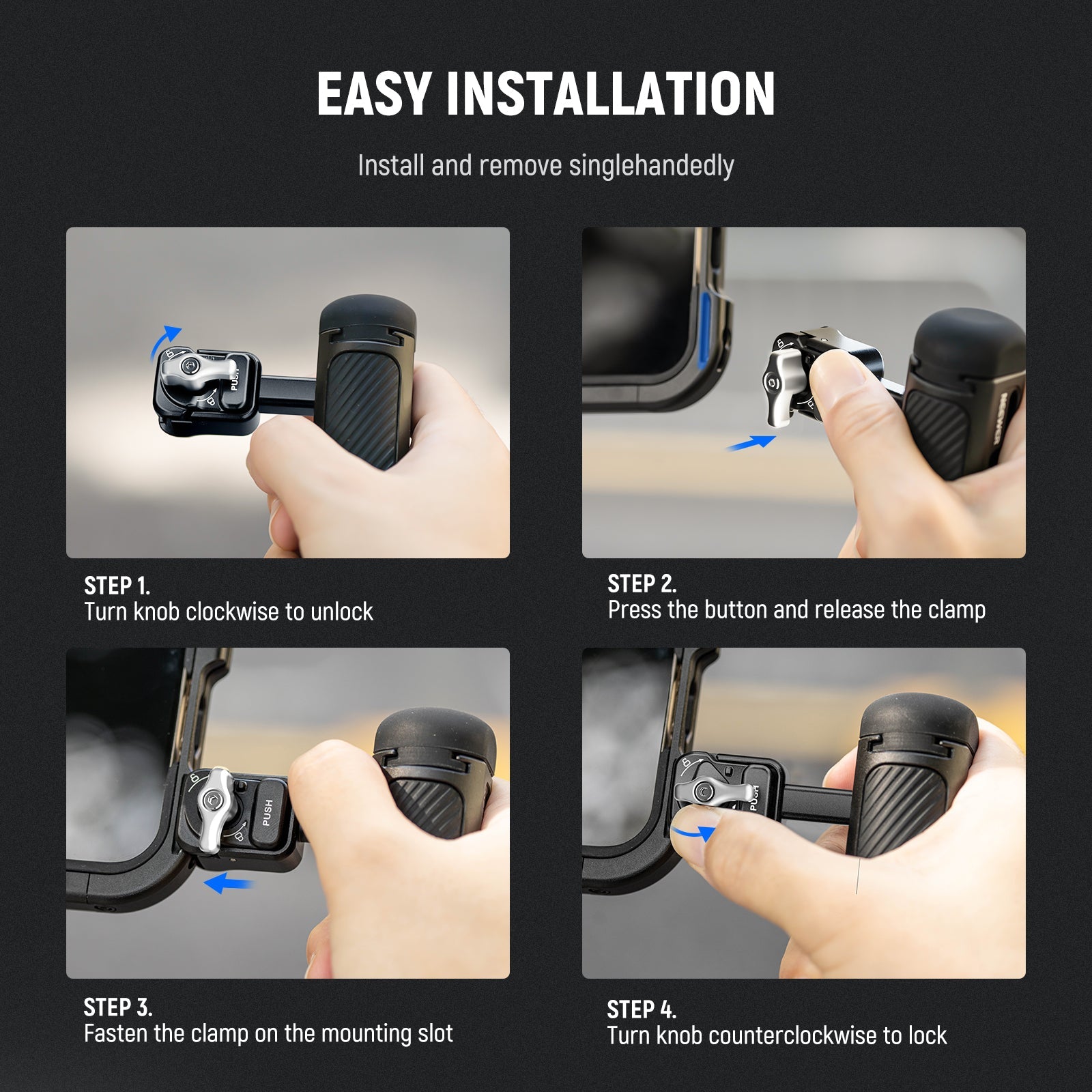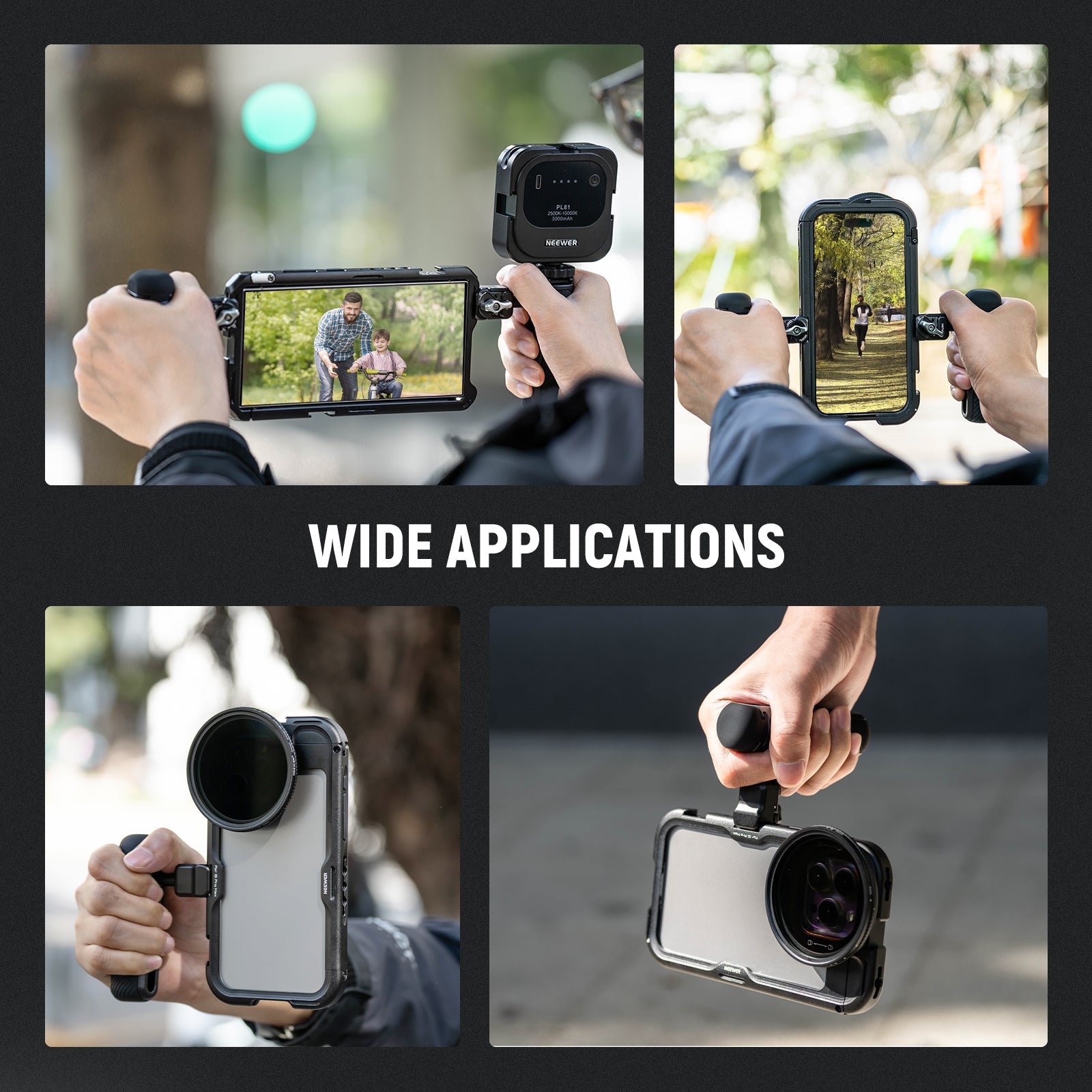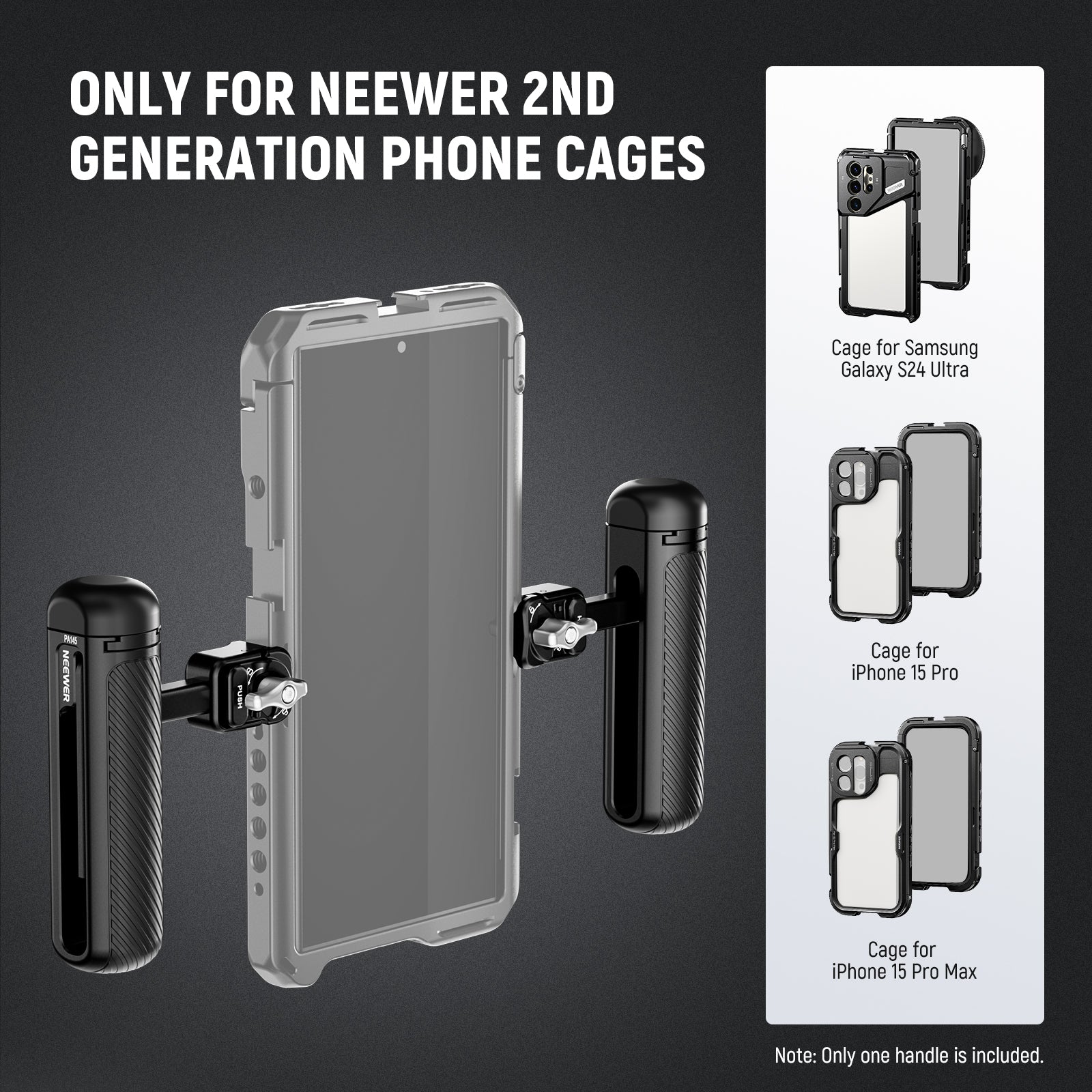 - Clamp On QR Side Handle- Designed for NEEWER phone cage models with quick release clamp slots, including PA043/PA044 for iPhone 15 Pro/15 Pro Max, PA073/PA074 for iPhone 16 Pro/16 Pro Max, PA042/PA082 for Galaxy S24 Ultra/S25 Ultra, and PA091 for Xiaomi 15 Ultra android cell phone. Ideal as content creato,r essential phone camera accessories and influencer must have photography gear