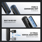 - Detachable Connector Arm- Detach the connector arm with the hex key (stored inside the side handle) and reinstall it at a 90° angle to convert the side handle to a top handle for capturing low angle footage. The arm also enables 2.2"/55mm vertical adjustment for optimal weight balance