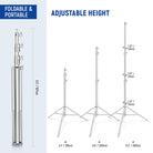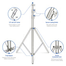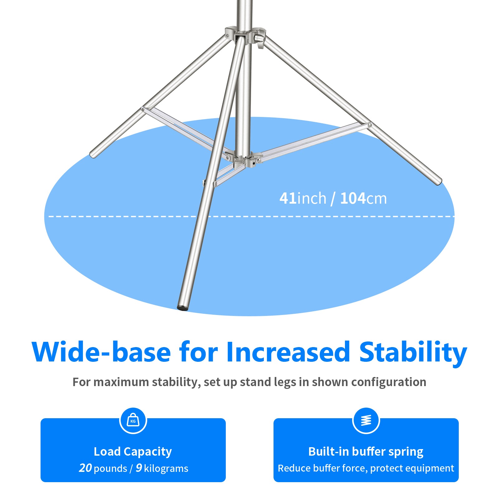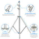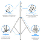 • Solid Construction- Made of 100% tough stainless steel, the light stand is impressively durable and resistant to corrosion and moisture for outdoor shooting tasks