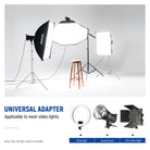 • Reversible 1/4” to 3/8” Adapter- With 1/4” & 3/8" threaded ends, the universal screw adapter is compatible with different accessories and light fixtures. A 3 way mounting interface allows you to mount in vertical and horizontal orientations