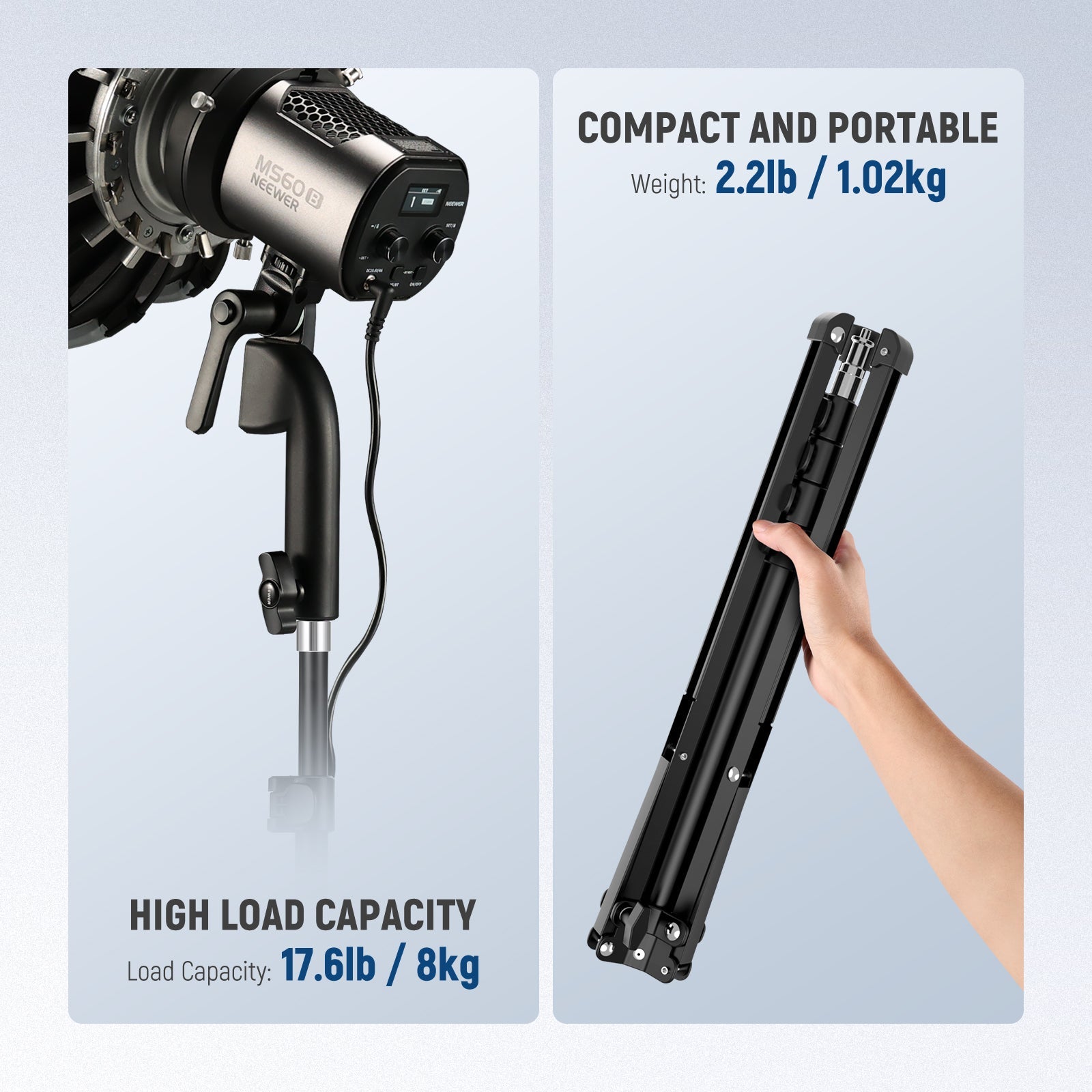 - Reverse Folding & Portable Use- With its reversible folding design, the tripod can lie flat, occupying minimal space when folded. Weighing just 2.2 lbs (1.02 kg), the overhead mic stand is portable and fits in the carrying bag for travel and outdoor photography