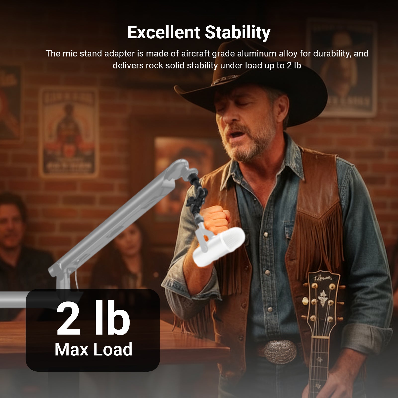 - Aluminum Alloy Build- The mic stand adapter is made of aircraft grade aluminum alloy for durability and rust resistance, and delivers rock solid stability under load. Max Load 2 lbs (900 g)
