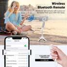- Bluetooth Remote Shutter- Pair with your phone via Bluetooth and wirelessly capture photos and videos in a range of 33ft/10m. The detachable remote shutter release unit of this phone tripod enables handheld use
