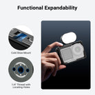 - Effortless Accessory Expansion- Built with a cold shoe mount and 1/4" thread with locating holes, the video rig can attach small LED lights, microphones, tripods, selfie sticks, and other equipment gear for enhanced results
