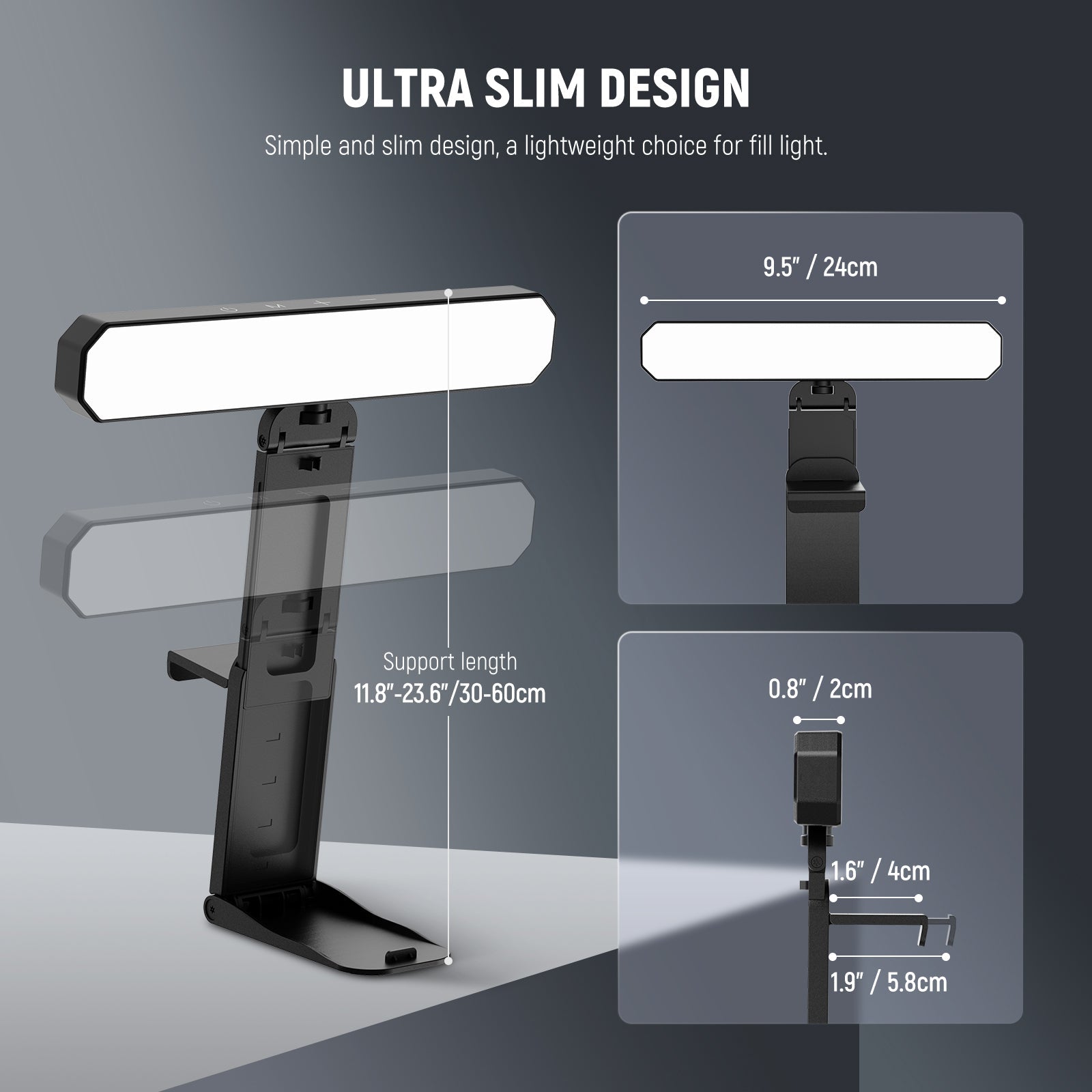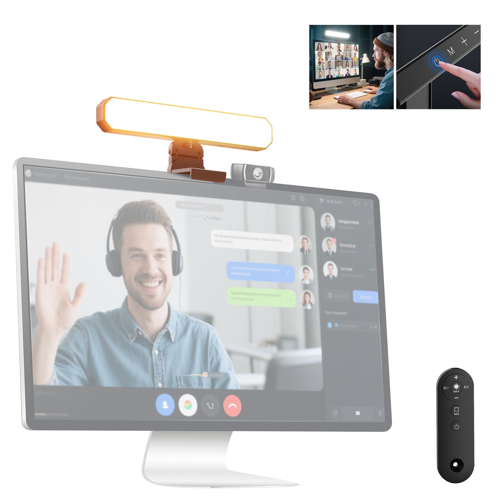 - Silent Touch Control & Wireless Control- Our laptop light for video conferencing can be controlled via its touch panel or the wireless control, effortlessly managing the ON/OFF function and color temperature/brightness adjustments. The design eliminates physical buttons, giving the lamp a sleek appearance while providing a super silent, distraction free control experience. The remote works from up to 32ft/10m away, no need for pairing or connection, supporting one tap max brightness/dimming