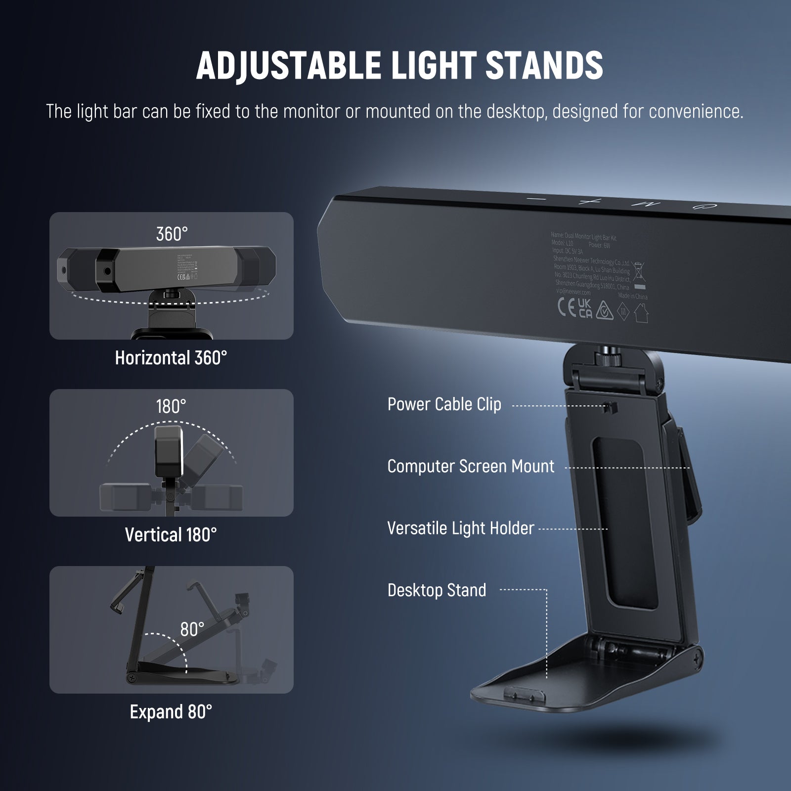 - Adjustable Light Stands- The two stands help attach the stick wand lights to a monitor or mount them on a desk for overhead phone camera photography/videography, as content creator essential photo props, influencer must have gear and desk gaming equipment, allowing for 4 height adjustments, 360° rotation, and 180° tilting to achieve optimal lighting angle. Include 4 cable clips and 1 cable tie to keep all cables neatly organized behind your monitor