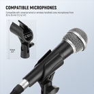 - Wide Compatibility- The microphone clamp comes with two 3/8" to 5/8" screw adapters, compatible with universal wired or wireless handheld cone body mics from 28mm to 35mm (1.1" to 1.4") / 30 to 35mm (1.2" to 1.4")