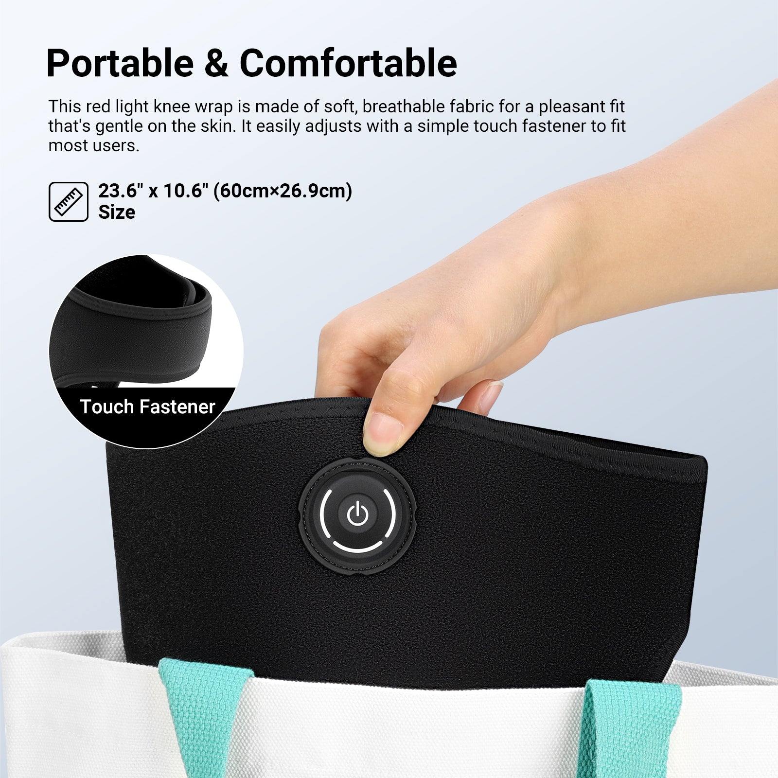 • Comfortable to Wear- This red light knee wrap is made of soft, breathable fabric for a pleasant fit that’s gentle on the skin. Measuring 23.6" x 10.6", it easily adjusts with a simple touch fastener to fit most users.