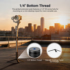 • 1/4" Bottom Thread- The gimbal extension pole features a 1/4"-20 screw hole for mounting on a mini desktop tripod for more versatile use
