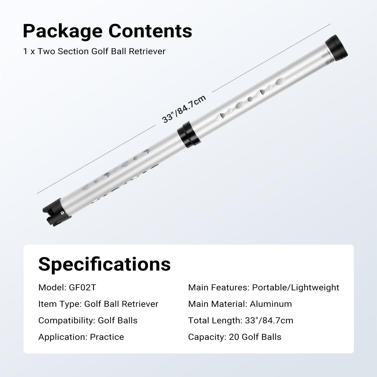 • No Bending Over- This 2 section, 33" golf ball retriever lets you pick up balls without bending, reducing back strain. Its threaded design allows easy & quick assembly