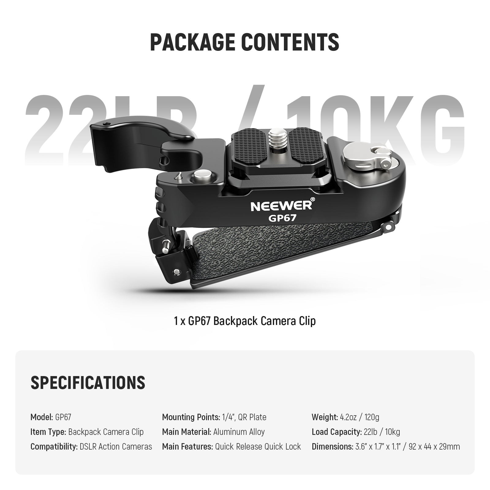 • 1 x GP67 Backpack Camera Clip
