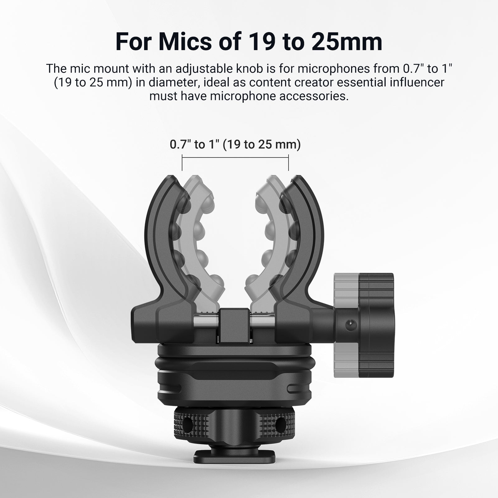 - For Mics of 19 to 25mm- The mic mount with an adjustable knob is for microphones from 0.7" to 1" (19 to 25 mm) in diameter, ideal as content creator essential influencer must have microphone accessories