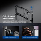 • Quick Release Bluetooth Handle- Promptly attaches to the cage via quick release slots to enhance handheld use. The Bluetooth remote shutter allows easy picture and video captures