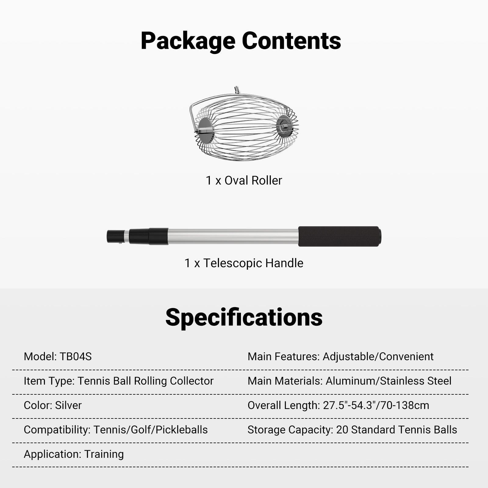 - Rugged Build & Easy to Operate- The handle is made of lightweight, high strength aluminum, making it easy to handle. The roller, crafted from stainless steel wires, resists rust and deformation while remaining flexible enough to let balls roll in effortlessly. To release the balls, simply spread the wires apart by hand. Ideal gear as pickleball tennis practice accessories and pickle ball training equipment